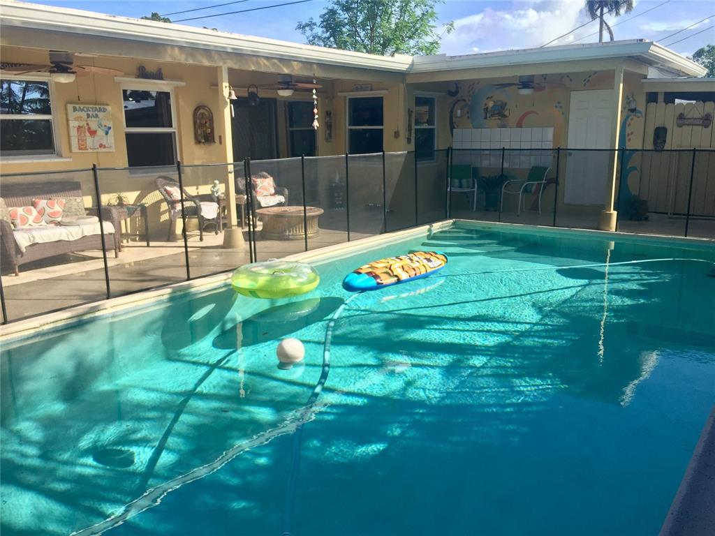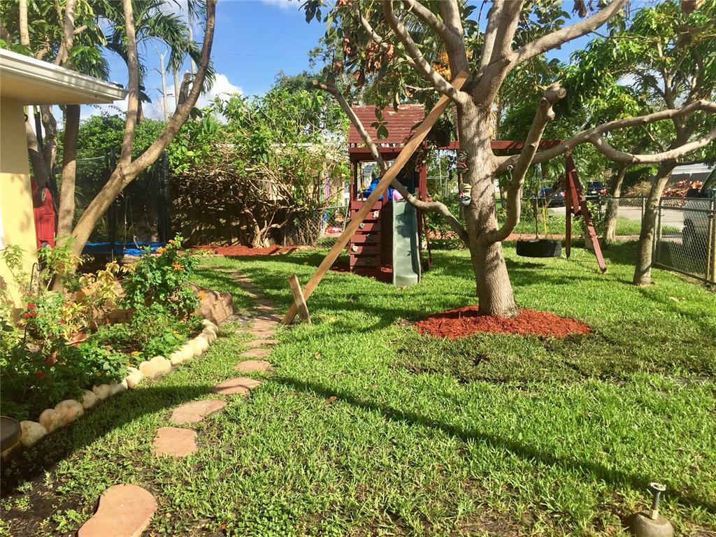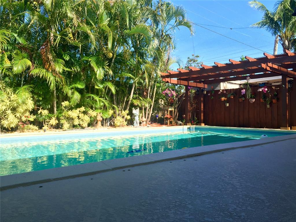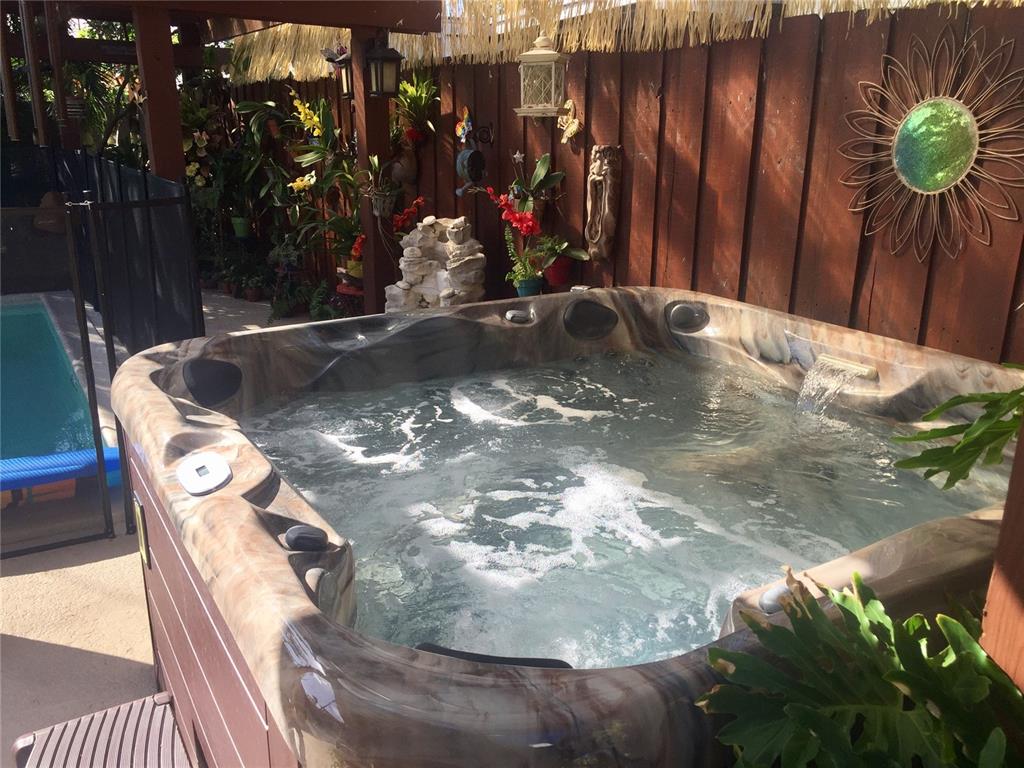 PRICED TO SELL, Quiet Cul-De-Sac pool home is one of the largest in the neighborhood with walk-in closets & new 6 person Jacuzzi! Walk to schools & shopping. Remodeled kitchen, new appliances, large pantry/storage & second refrigerator. Florida room is perfect for a pool table! NEW roof & A/C. Impact windows with vertical blinds, tile & laminate wood floors throughout with base boards & crown molding. Remodeled bathroom with Jacuzzi tub overlooking the large pool & tropical landscaping with Mango & Avocado trees offering plenty of shade and privacy plus a pergola that makes for a great orchid house & natural butterfly garden. A custom built shed, outdoor sink & Jungle gym play set is great for young children all encompassed in your protected fenced in yard.
