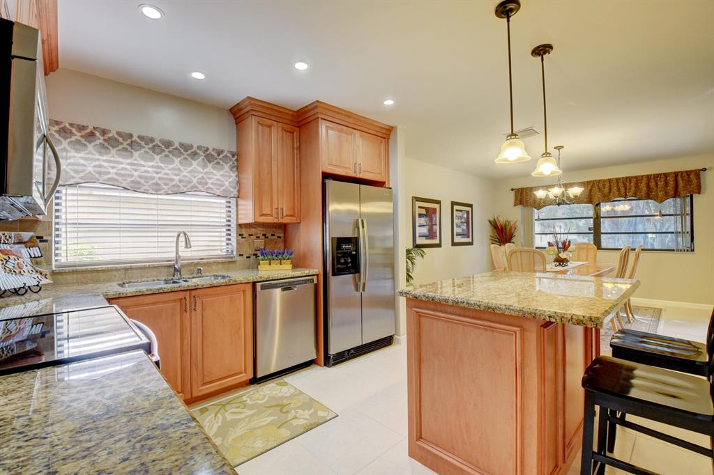 Beautiful COMPLETELY RENOVATED HOME with GORGEOUS LAKE VIEW. LARGE SCREENED PATIO! Single family home in 55+ community with 2-car garage. Den can be used as 3rd bedroom. Stunning kitchen with wood cabinets, stainless steel appliances, fabulous granite counters & cook island! Large neutral tile & wood laminate flooring. Vaulted ceilings. Relaxing screened & covered patio with tile flooring. Screened elongated front porch. A/C - 2017. Roof - 2012. Exterior painted 2016. Panel shutters, complete set. Active clubhouse, pool, tennis, sauna, fitness room, BBQ area, pier. Assoc says 55+ community. 2 pets welcome up to 20 lbs each. HOA covers exterior paint, lawn, cable, clubhouse. Lovely West Boca area, convenient to shopping, dining, and recreation.