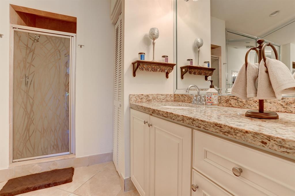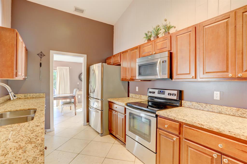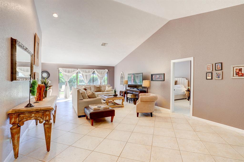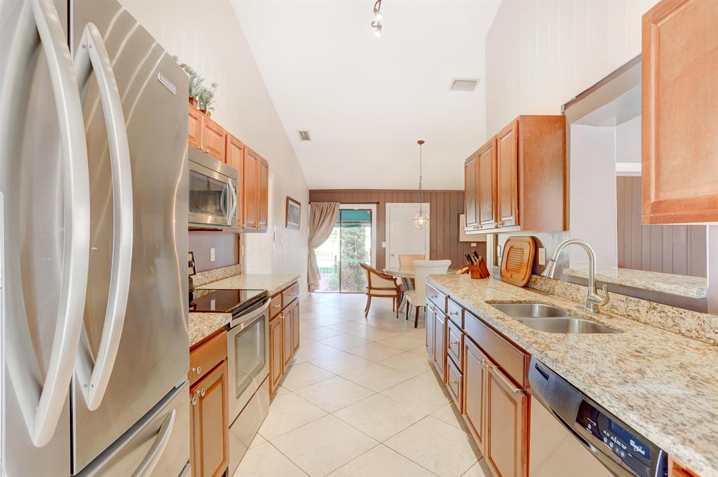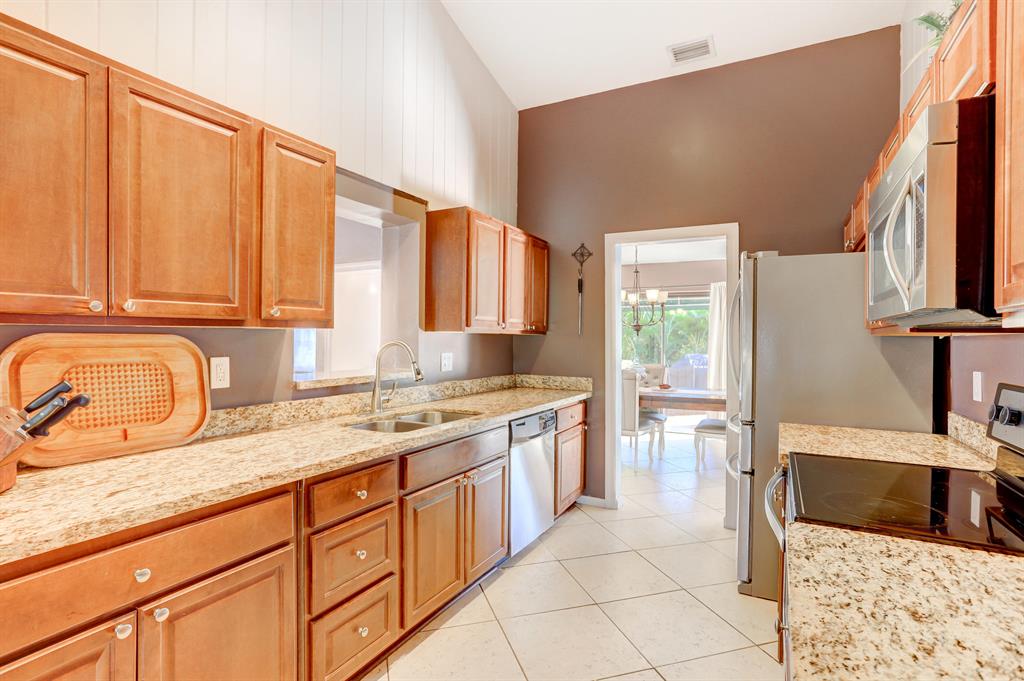 Come see this gorgeous 3 bed / 2 bath French inspired corner villa with stylish updates located within the quaint enclave community of L'Ambiance in Boca Raton. This charming residence features a bright and airy open concept floor plan with vaulted 12 ft ceilings and recessed lighting throughout, upgraded kitchen with premium wood cabinetry, granite countertops, stainless steel appliances and under-mounted double sink. This incredible home offers one of the only 2 car garages in the community with updated bathrooms, spacious bedrooms, Florida Room with textured walls, architectural accents and wood beam ceiling great for use as home office, workspace, media room or children's play area. SEE SUPPLEMENT.