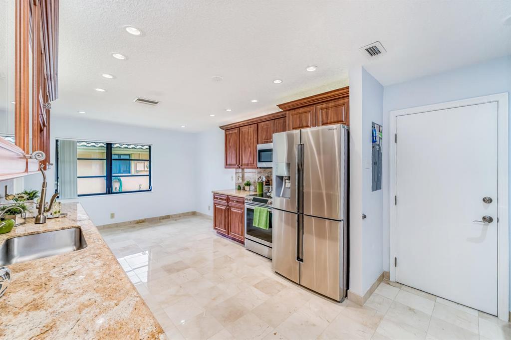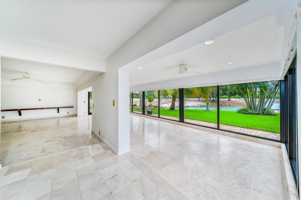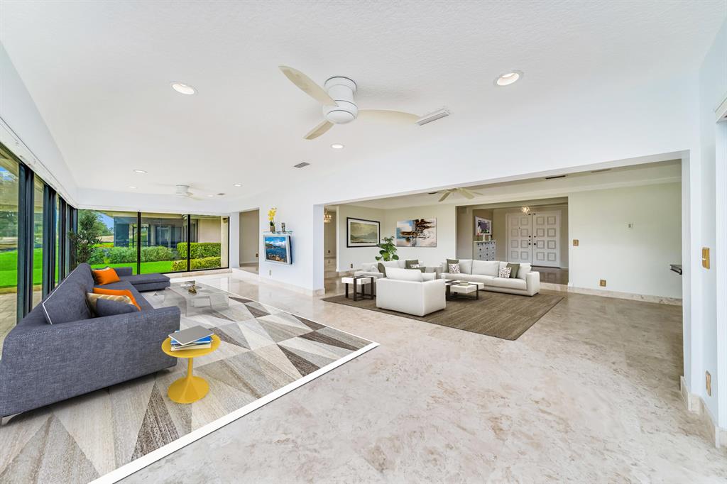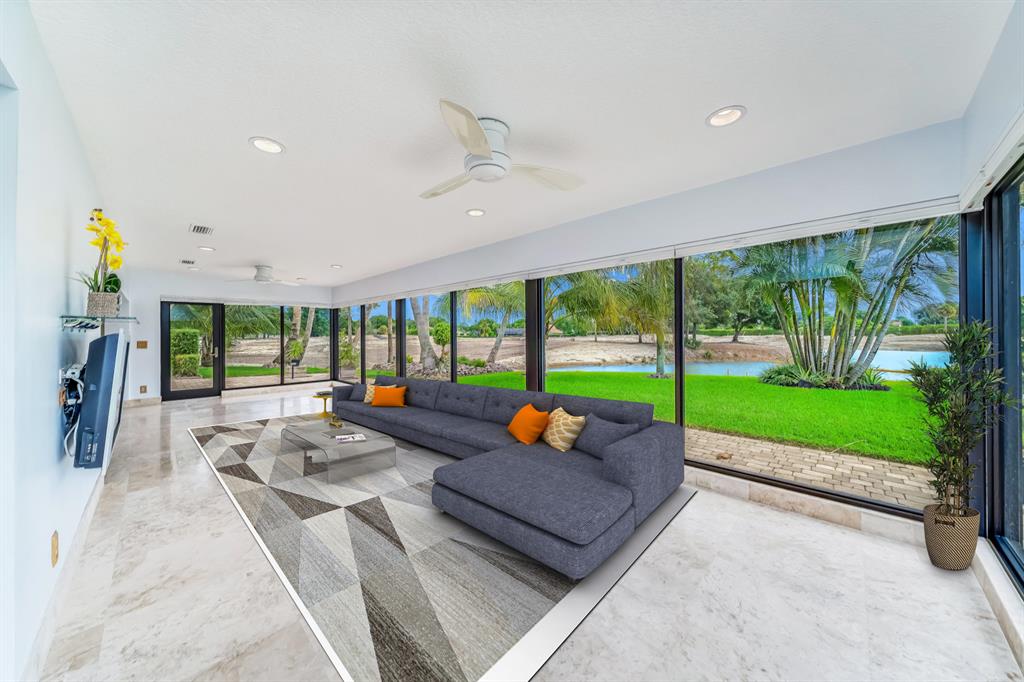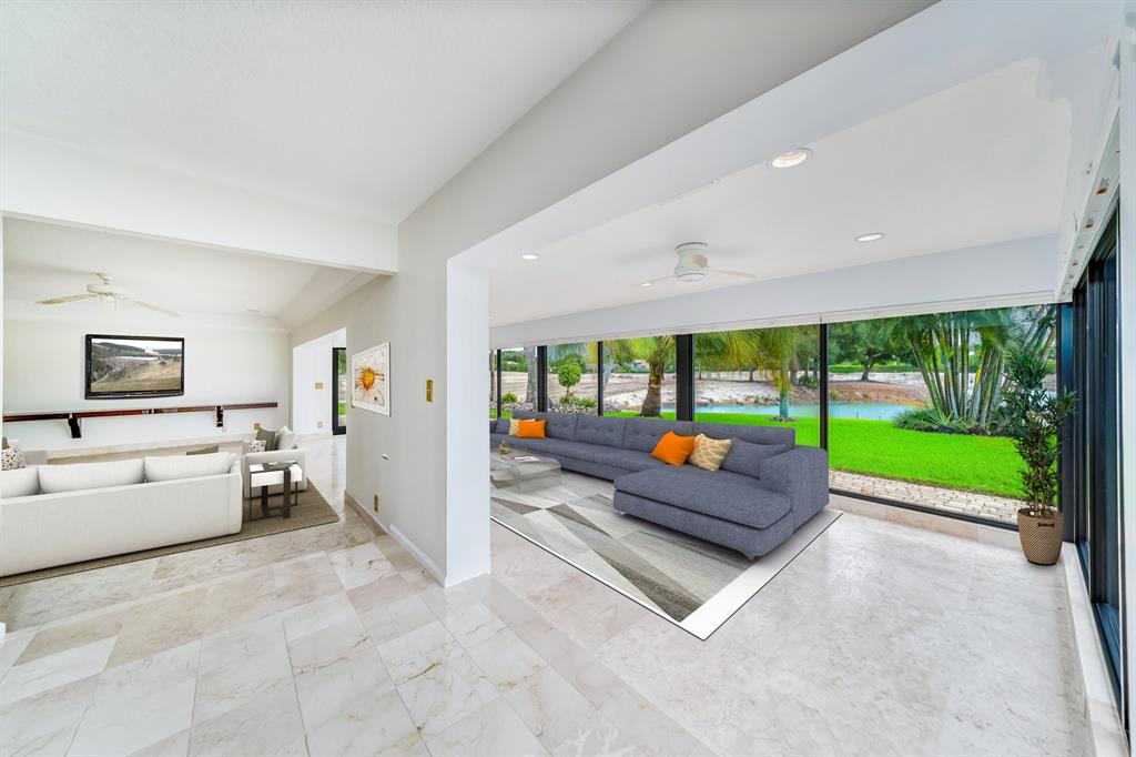 Enjoy magnificent 180 degree panoramic golf & lake views from almost every room in this light & bright, 3 Bedroom, 2.5 bath, 2 car garage home, located on a cul-de-sac on possibly the largest lot in the community (9,654 square feet). Spacious Home is ''Truly'' 2,790 square feet under air. Double door entry to beautiful foyer, opening up to the enormous living room with marble flooring throughout w/south facing scenic views of what will be the 4th hole in the upcoming Via Mizner Jack Nicklaus Signature Golf Course that is affiliated with the Mandarin Oriental hotel. All sliders are Impact Hurricane Glass. Fabulous Kitchen features granite countertops & backsplash, new cabinetry including glass doors for display, updated stainless appliances including Samsung refrigerator w/Flex Zone-4 zone,