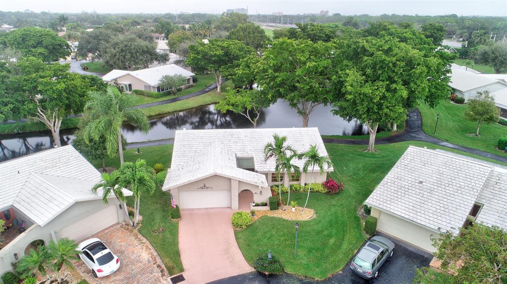 ALL AGES - PET FRIENDLY. Great lake views from this meticulously maintained 3/2 home in central Boca Raton. Home is located at the end of cul de sac. Part of the 2 car garage has been converted to a much desired inside laundry room. The home has some updates. Accordion and metal shutters provide storm protection. The gutters have screens to prevent leaves and debris. The driveway is cement. Community features 2 heated pools and is located close to I-95, Shopping and the Beaches. A Rated Schools and Sugar Sand Park across the street. Community is governed by Condominium, Maintenance includes: pressure cleaning roofs, lawn care, painting of homes every 5-7 years, sprinklers, pools and lake care + Dining Room Fixture does not convey.1 garage door clicker1 Pool Key 2 front door ke