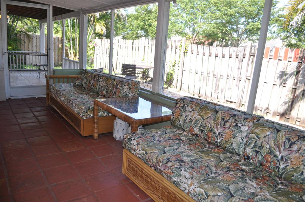 Quaint, newly renovated Kitchen and bathrooms plus freshly painted. 3/2 with a bonus room. Single car garage partially converted into a bonus room. Easily converted back. Backyard oasis with everything needed for a south Fl. lifestyle! New granite counter tops. Panel shutters. Ceramic tile. Open floor plan. Kitchen window and skylight makes it bright and sunny for your morning coffee or afternoon tea. Lovely screened patio next to an inviting open porch. Huge green space, no rear neighbors. Completely fenced in. Great neighborhood with 'A' rated schools, heated community pool and tennis court