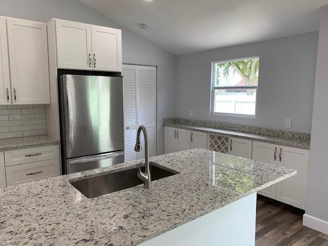 Beautifully renovated 1 story home with over 1,200 square feet in Trends! This bright and airy property features 3 bedrooms and 2 bathrooms. The kitchen was completely redone with new 42' cabinets, SS appliances and beautiful granite counters tops with overhang where you can seat 6 people easily. New vinyl flooring throughout the house. Recessed lights and smooth ceiling. New windows and sliding door. The Master Suite features a completely remodeled bathroom, with dual sinks floating vanity and herringbone pattern tile shower. A fresh coat of paint inside and outside. Brand new A/C and brand-new tankless water heater. Roof was replaced in 2006. Trends has a community pool with 2 tennis courts and a very low HOA fee- $77/mo. A rated schools.