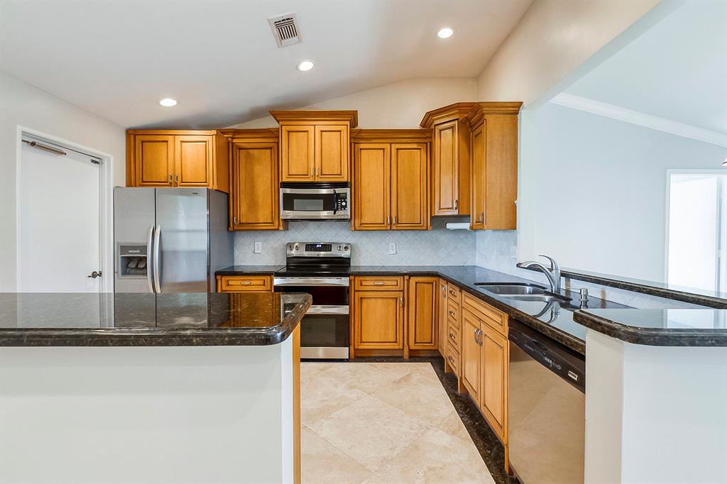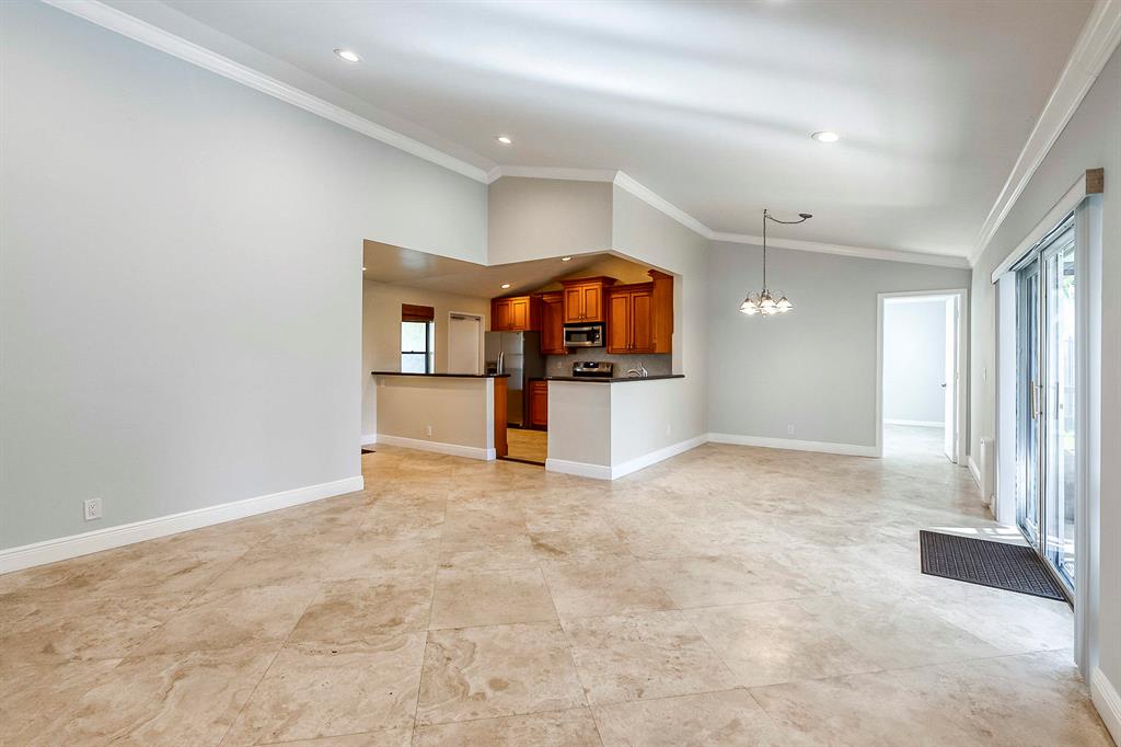Back on market, FHA appraised and inspected. This beautiful lakefront home is totally renovated and move in ready. Featuring 4 bedrooms and 2 bathrooms its located in a friendly, quiet and safe neighborhood of Southwind Lakes. Home is totally remodeled and updated featuring 24 inch diagonal travertine floors. Renovated open kitchen features gorgeous custom seike wood, matching Kenmore Elite stainless steel appliances and double oven. Vaulted ceiling in kitchen, living and dining room add tremendous openess and flow out to lake view. Remodeled bathrooms boast travertine floors and granite. Guest bedroom and Office feature wood flooring and 4th bed aka workout room features commercial rubber flooring. Upgraded electrical panels, 2010 Seer AC unit, Impact windows and Patio door.