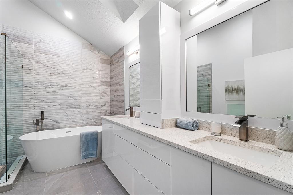 This completely renovated one-story home features modern and sophisticated finishes throughout. From the moment you step into the spectacular home, the light, bright, and open floor plan amazes. The gourmet kitchen offers beautiful European-inspired cabinetry with state-of-the-art appliances. The focal point island offers eating space as well as the stylish hood vent, adding a touch of elegance. The kitchen flows directly into the dining area and living room with voluminous ceilings. Sliding doors lead to the patio with a long tranquil garden view. The impressive master suite also features sliding doors to the outdoor space, two large closets with custom shelving, and a spa-like master bathroom with a free-standing tub, dual sinks and a massive walk in shower. Two additional bedrooms --->