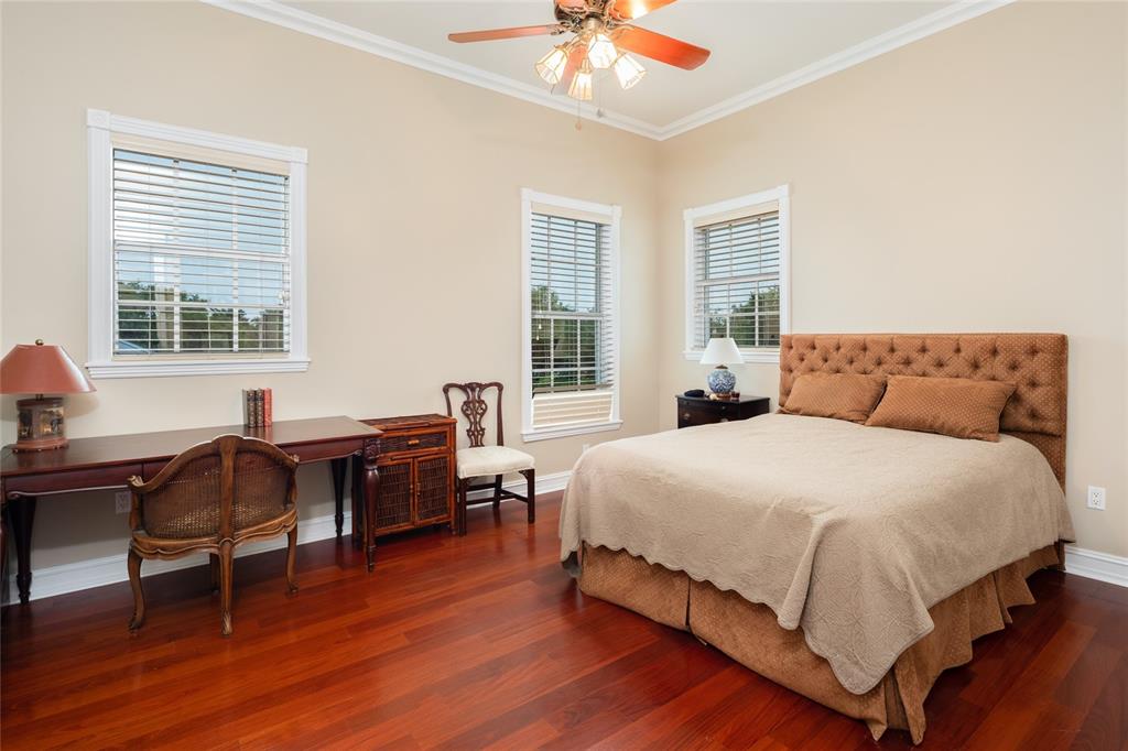 Stunning Sunshine Ranches gated compound on extensively landscaped corner acreage. Timeless Key West style w/metal roof & wrap around porches. Featuring a hotel style courtyard pool & fountain, summer kitchen, sport court & detached poolside guest house Casita. Stately living areas w rich details, built-ins, mahogany & marble floors. Elegant Chef's kitchen w center island, commercial grade stove & hood, chilled wine closet & morning dining room. Downstairs Master Suite and bath + guest suite off kitchen. Upstairs game room, 3 bedrooms each w full baths. Family room w fireplace & horseshoe bar overlooks the pool courtyard. Interior fountain gathering area off kitchen & family room offers a unique setting w adjacent library/den. Winding live oak drive w 2 entry points & detached garage.
