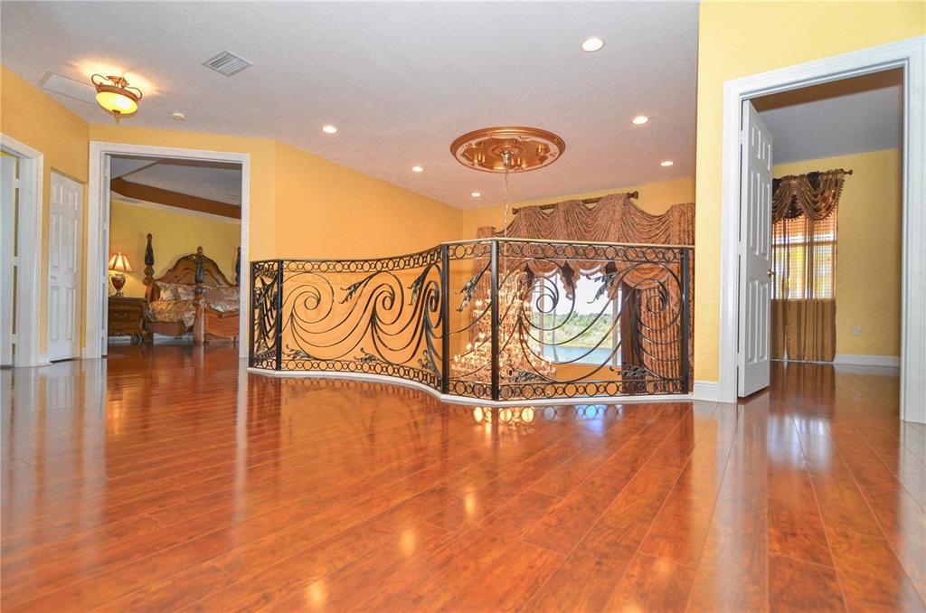 STUNNING TWO STORY HOME WITH IMPRESIVE ENTRANCE WITH WATER FOUNTAIN AND EXTENDED DRIVEWAY THAT CAN ACOMMODATE MORE THAN 12 CARS. LIVING ROOM AND DINNING ROOM WITH ELEGANT CHANDELIERS WORTH MORE THAN $30,000. GOURMET KITCHEN WITH CUSTOM MADE WOOD CABINETRY, GRANITE COUNTERTOPS, PORCELAIN AND WOODEN FLOORS, STAINLESS STEEL APPLIANCES WITH CENTER ISLAND. NEW WATER HEATER AND A/C UNITS, CROWN MOLDINGS. PRIVATE MASTER WITH BALCONY, SITTING AREA, ALONG WITH HIS AND HERS BATHROOMS. DOWNSTAIRS COMES WITH CUSTOM MADE WOODEN OFFICE AND 1 BEDROOM. HUGE BACKYARD WITH 23,748 SF LOT OVERLOOKING AMAZING SUNSETS, WATER VIEWS, AND PRESERVES.