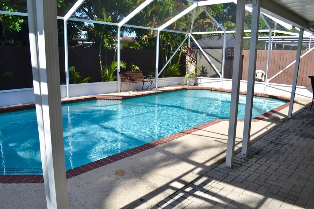 Beautiful Single family home in east Miramar 2 bedroom, 2 bath with pool, This home features stainless steel kitchen appliances, tile floors , updated bathrooms, screened in pool with bar area great for entertaining. Brick pavers in back yard with 2 sheds for storage ,sprinkler system. Big circular driveway with covered porch parking. It also has shutters through out for hurricane .