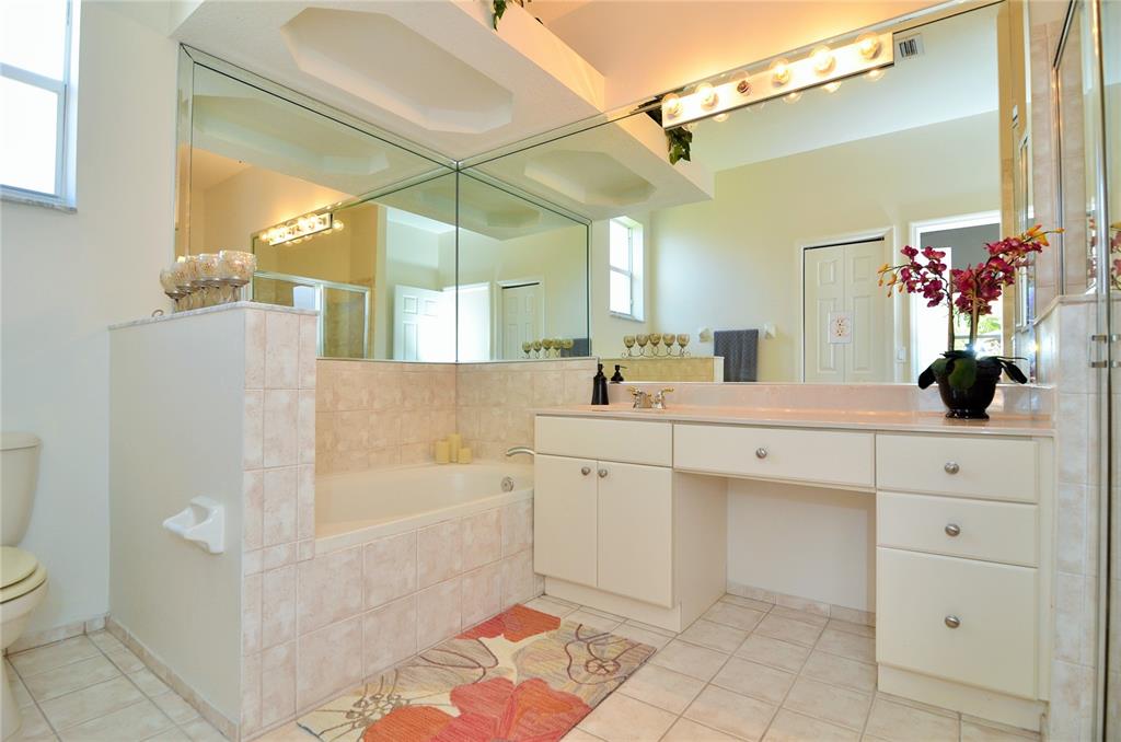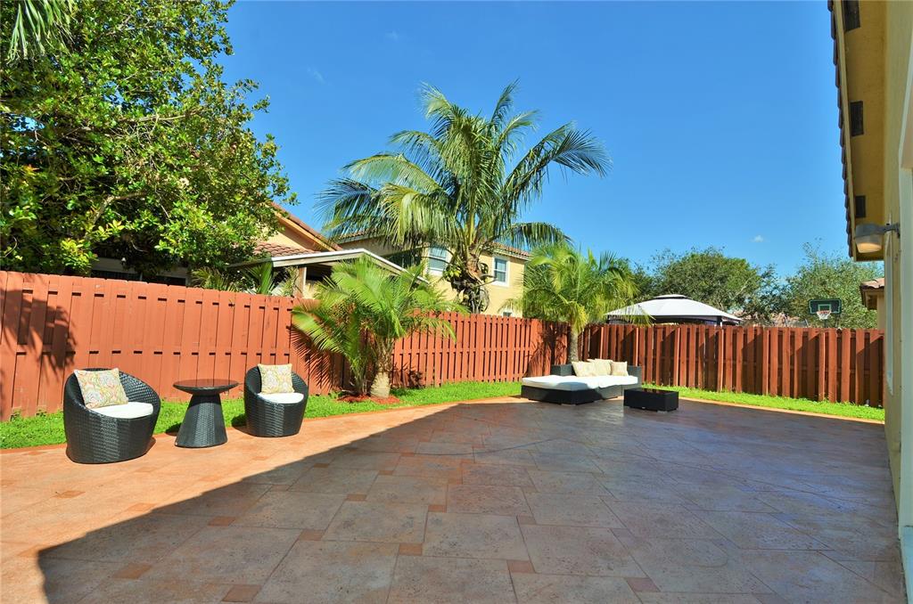 Beautiful, bright, well maintained one story home with vaulted ceilings and split floor plan. Upgraded kitchen with granite countertops, stainless steel appliances. Large master bathroom with soaker tub and large shower, master has a walk in closet. Upgraded large diagonally laid tile in main areas and laminate wood floors in all bedrooms. Enjoy the backyard with an oversized lot and extended paved patio, great for entertainment!. Freshly painted interior, exterior, garage and driveway. Private low maintenance fenced backyard, kids playground located on the same block. Private gated community with 2 pool and gym, 8 playgrounds. Close to shopping, restaurants, 1-75 and turnpike. Move in ready!