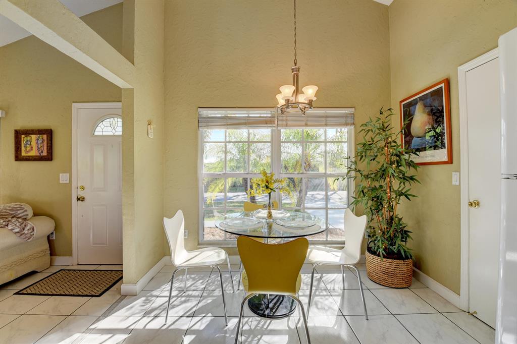 Pleasant, bright, beautiful and well maintained property in an excellent location in Boca Raton.The house offers a Living-room & Dining-Room with high ceiling, an Eat-in Kitchen with spacious cabinets, three (3) Bedrooms with closets and two (2) complete Bathrooms. Behind the sliding glass door in the Living-room is a Patio/deck that unites with the grassy backyard that offers a lake view. Combined with this are hurricane impact windows, a garage with a driveway with enough space for two (2) cars. The low HOA offers a swimming pool, tennis court, basketball, handball and picnic-area. Privileged schools and access to the main roads and shopping centers, supermarkets, etc. make this home a perfect 10 !