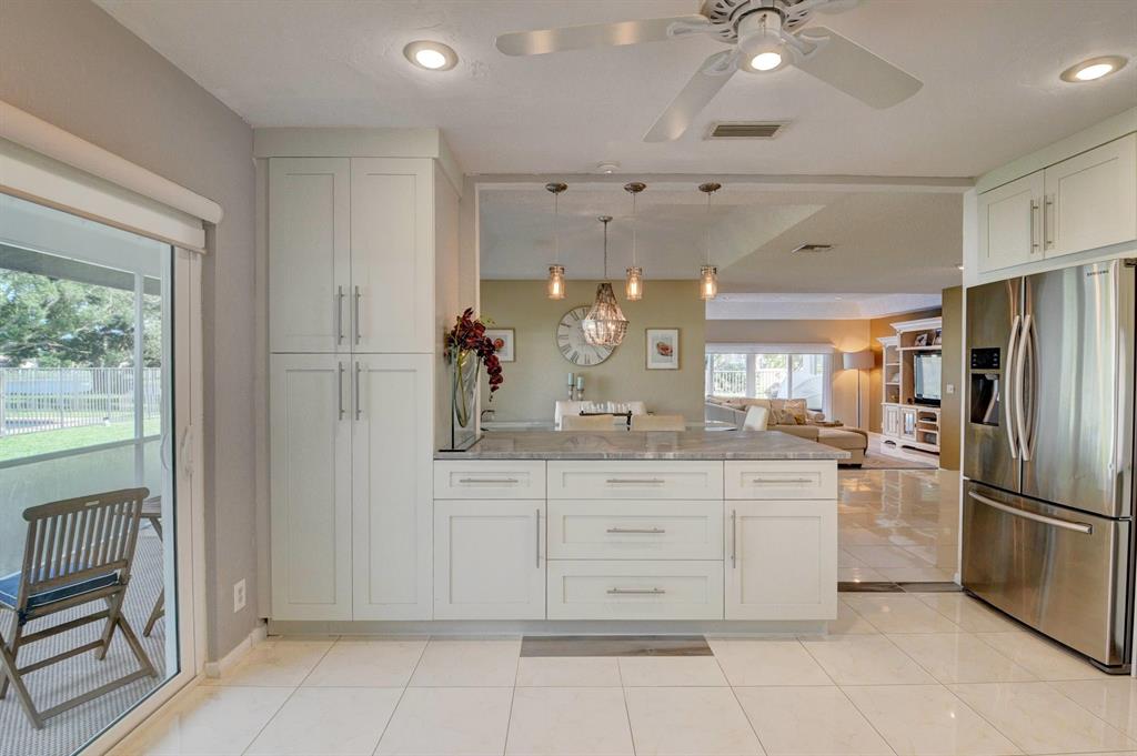 This home will not disappoint the fussiest buyer! A great open floor plan which is beautifully updated, Hurricane impact Windows throughout with tremendous views of the pool, lake and golf course upon entering the house. Beautiful, white shaker cabinets, quartz counter tops and new appliances make the kitchen very inviting. All the bathrooms are remodeled beautifully. There is a great wet bar, a spacious dining room and so much more! The patio is large which is wonderful for entertaining. There is also a separate screened in Florida room! This great home is located in a gated community close to shops, amazing schools and restaurants. A must see!