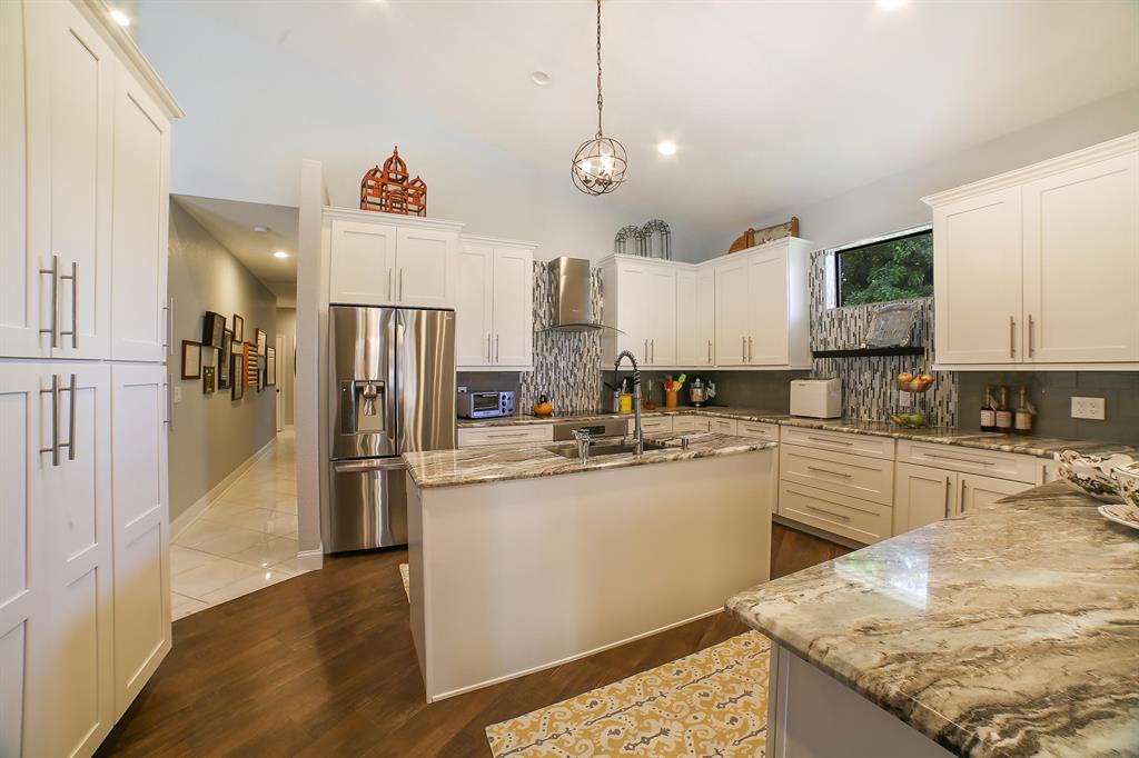 STUNNING ONE FLOOR REDONE HOME IN LA CORNICHE. Just bring your furniture because everything has been updated to make you relax------no worries about this home with construction. Roof, hurricane shudders, impact windows keep you protected....no popcorn ceilings and renovated kitchen, all baths, cabana, guest bedroom, laundry room, new bar, landscaping, and so so much more. This is 3 bedrooms but one of the big bedrooms could have the wall put back in and then it would be 4 bedrooms. This is a one of a kind home in La Corniche that backs up to Parkland. Membership optional.