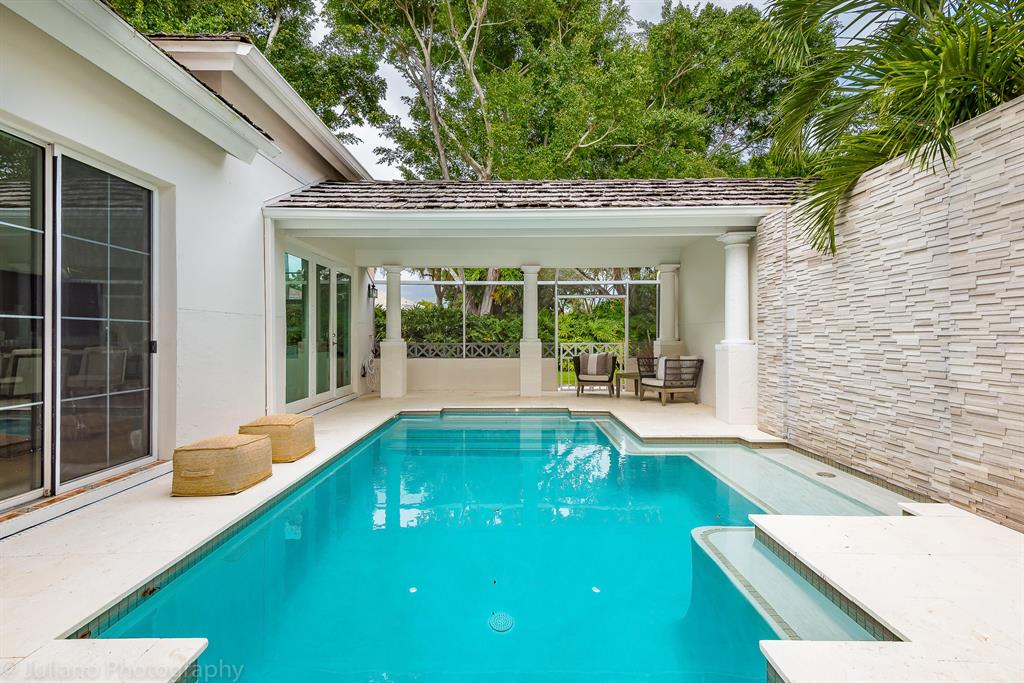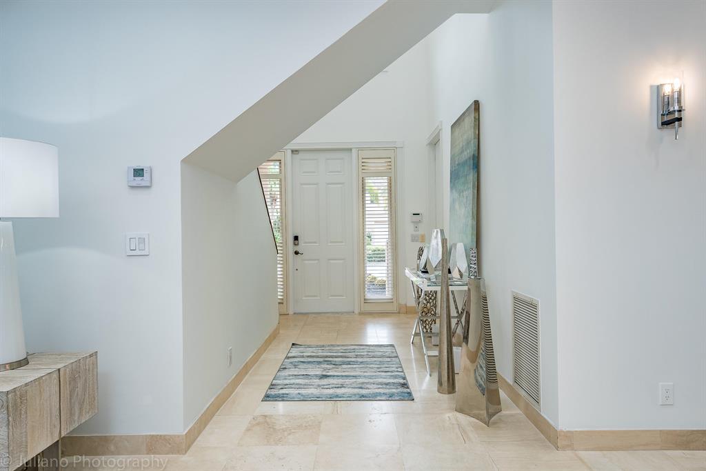 Immaculate, renovated townhouse! Gorgeous kitchen with huge island, quartz counter tops, and glass back splash. Completely redesigned pool with travertine marble and stacked stone feature wall. Formal living and dining rooms with views of the pool from every room. Upstairs, two master suites with new built-in closets, new master shower and new vanities. Dining room can easily be converted back to a bedroom because it has a closet and an adjacent full third bathroom/powder room. Huge laundry/storage room in the second garage bay. Partial impact windows. Corner unit allows for windows on three sides of this spacious townhouse. Light and bright! Can be purchased fully furnished for additional cost. Mandatory membership to Woodfield Country Club must be purchased. Must see, motivated seller!