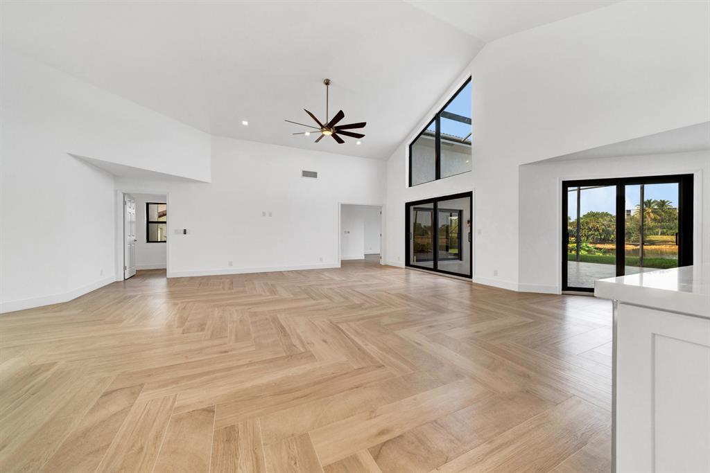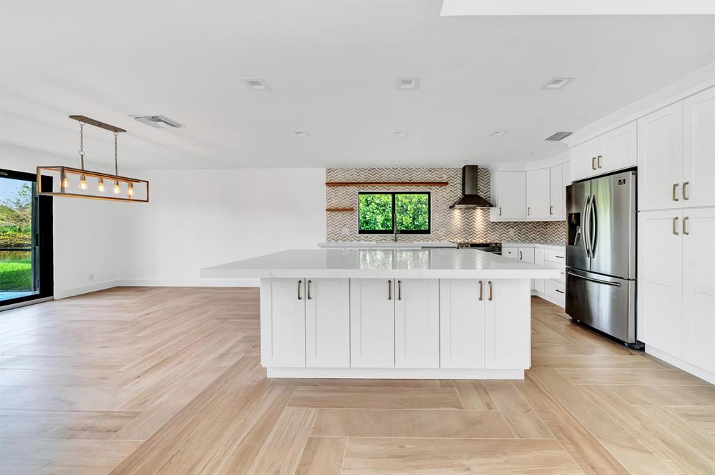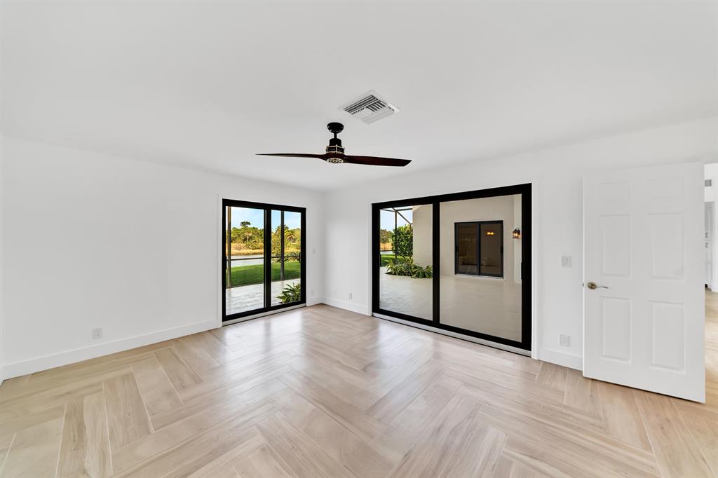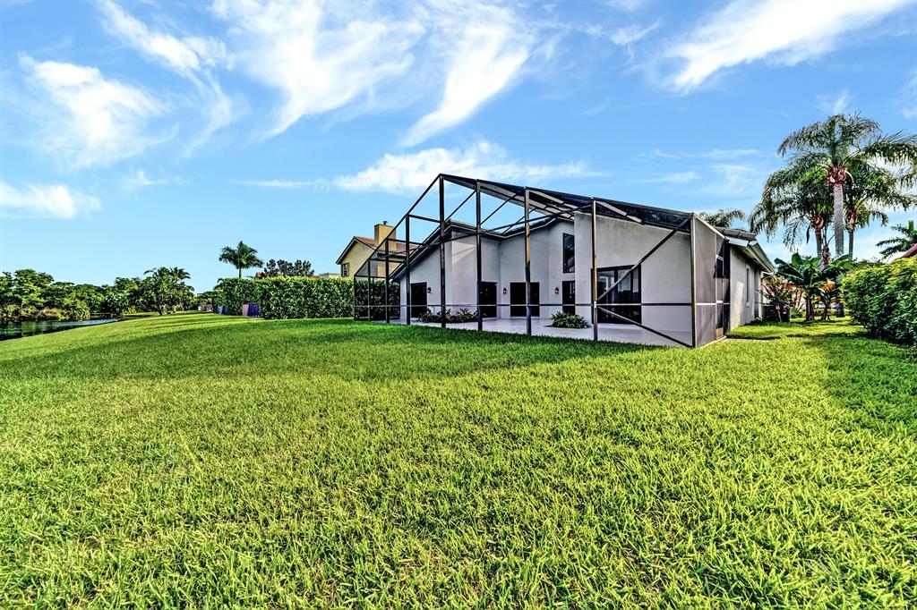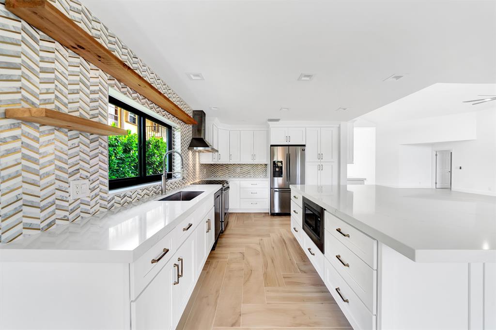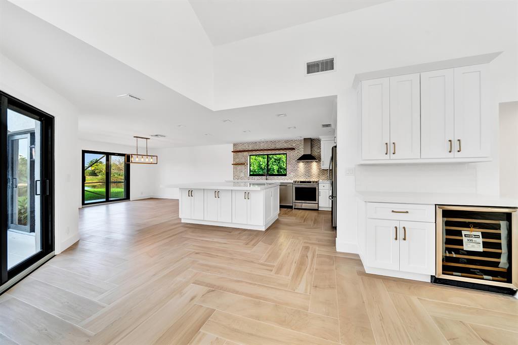 Situated on over a quarter of an acre in a cul-de-sac with expansive water and nature views, this single family home boasts over 2,600 square feet of all new high end finishes throughout including new impact glass windows and doors. Volume ceilings and water views greet you as you enter through the modern impact glass double door entry. Your eye is immediately drawn to the tranquil water views beyond the lanai. Ideal for entertaining, the massive island allows seating for up to six and guests can enjoy a private guest suite on the East wing of the home. The master bedroom has the best views in the house and ample natural light.