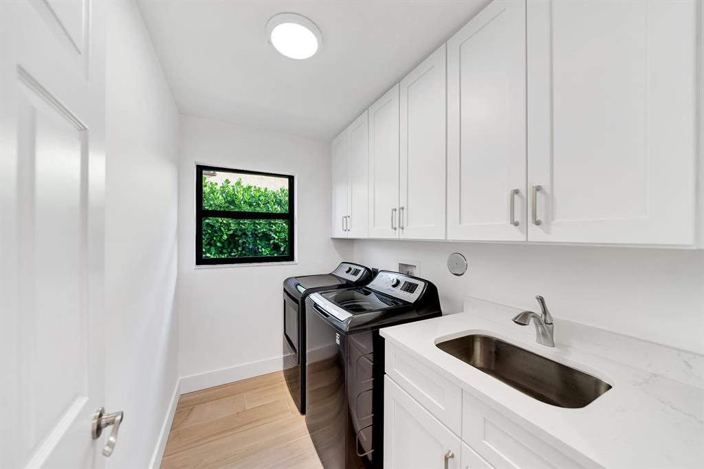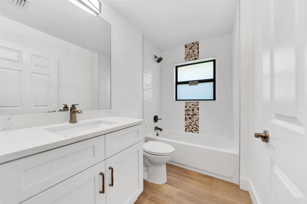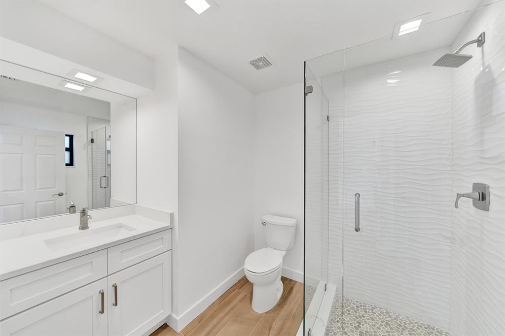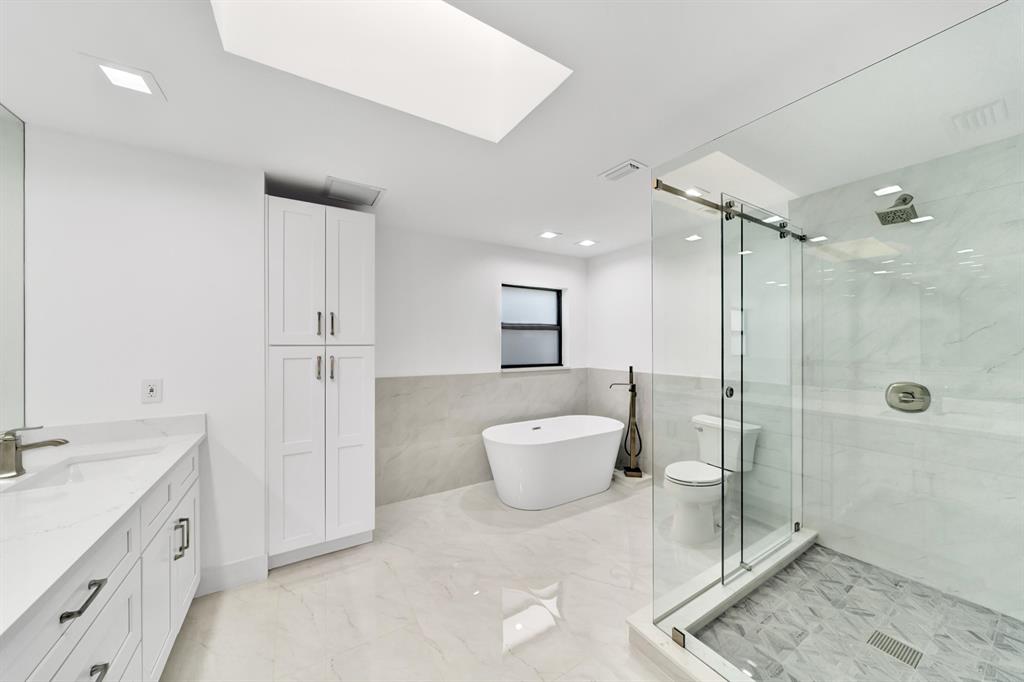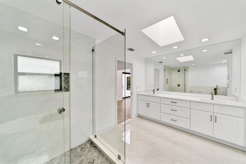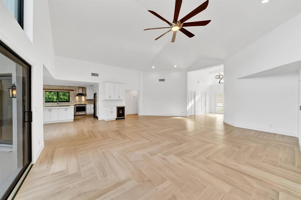 Situated on over a quarter of an acre in a cul-de-sac with expansive water and nature views, this single family home boasts over 2,600 square feet of all new high end finishes throughout including new impact glass windows and doors. Volume ceilings and water views greet you as you enter through the modern impact glass double door entry. Your eye is immediately drawn to the tranquil water views beyond the lanai. Ideal for entertaining, the massive island allows seating for up to six and guests can enjoy a private guest suite on the East wing of the home. The master bedroom has the best views in the house and ample natural light.