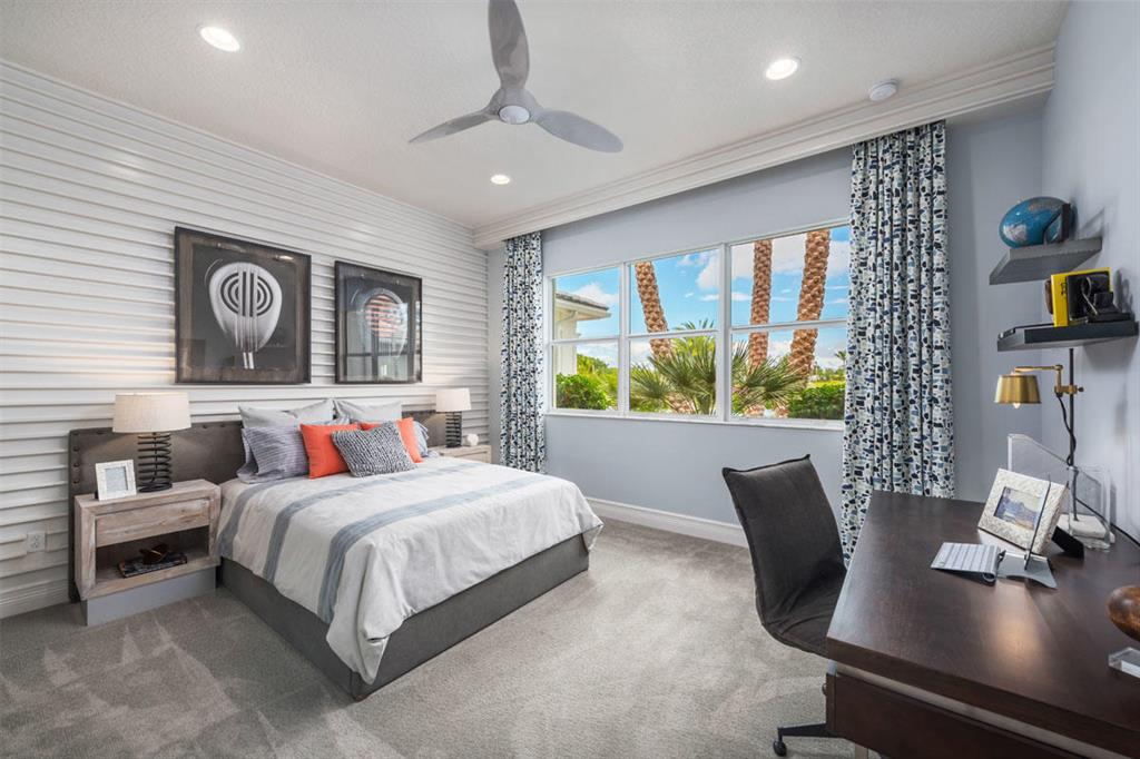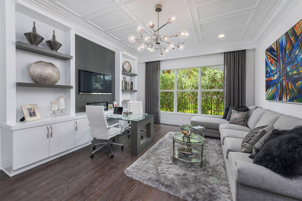 FULLY FURNISHED MODEL HOME - Professionally decorated. -July-Oct delivery. Impact Glass Windows and Doors. Elegant Summer Kitchen, Model pool with 4 LED laminar jets with wind sensor. 24 x 24 White Carrera marble floors throughout living areas. Kitchen includes KitchenAid appliances, Granite Azul Crystal countertops with Quartz Sleek Concrete countertops on the island and buffet counter. Master Bath offers Indiana Stone Silver Polished 12''X24'' Porcelain bath walls to ceiling and flooring outside of the shower enclosure, Chesapeake Maple Artic White cabinets and Mystery White Marble countertops. All Secondary Baths have extended tile to ceiling in the showers, granite or quartz vanity top, Moen faucets. Please call for a full list of upgrades