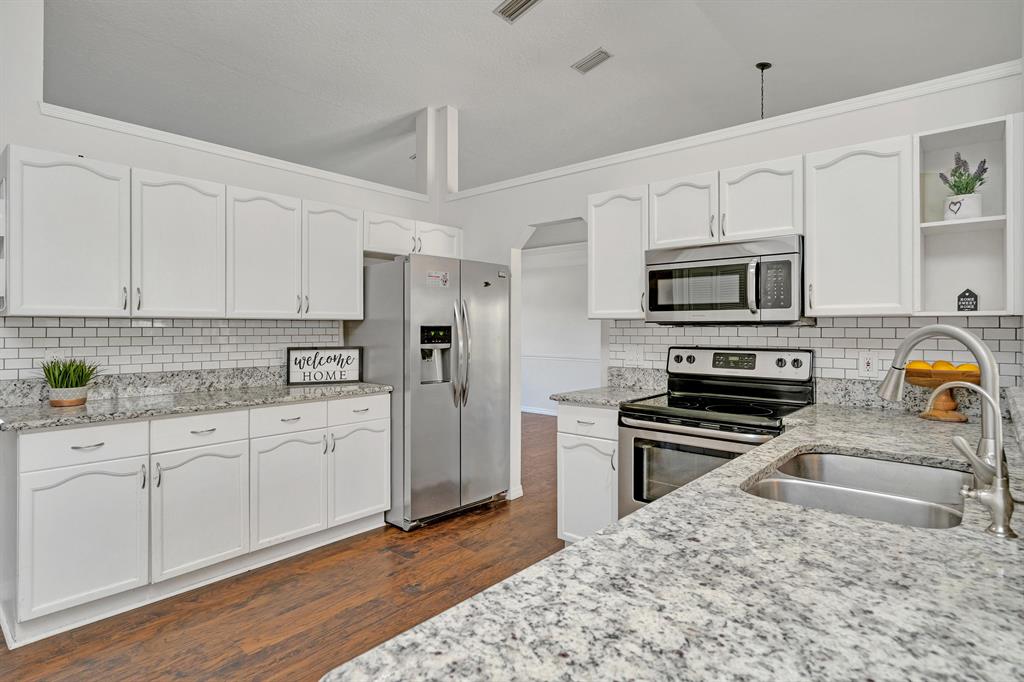 Beautifully remodeled 4/2/2 on 1.15 acres with NO POND! You will enter this updated home through the stunning mahogany wood, double front doors!This amazing home was completely updated in 2014, with a New roof, A/C system, dark wood flooring throughout, granite countertops, and stainless appliances. High-quality reverse osmosis water filtration system in kitchen. Soaring ceilings give this home a bright and open feel, great split floor plan, with the master on one side. Master suite has large bathroom w/double sinks and separate tub/shower.