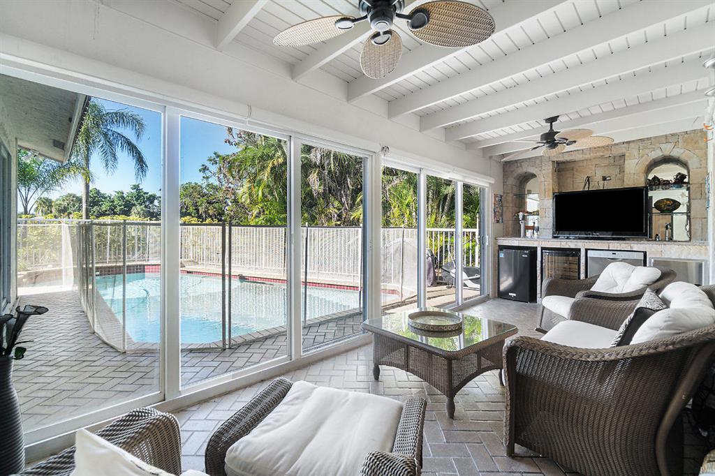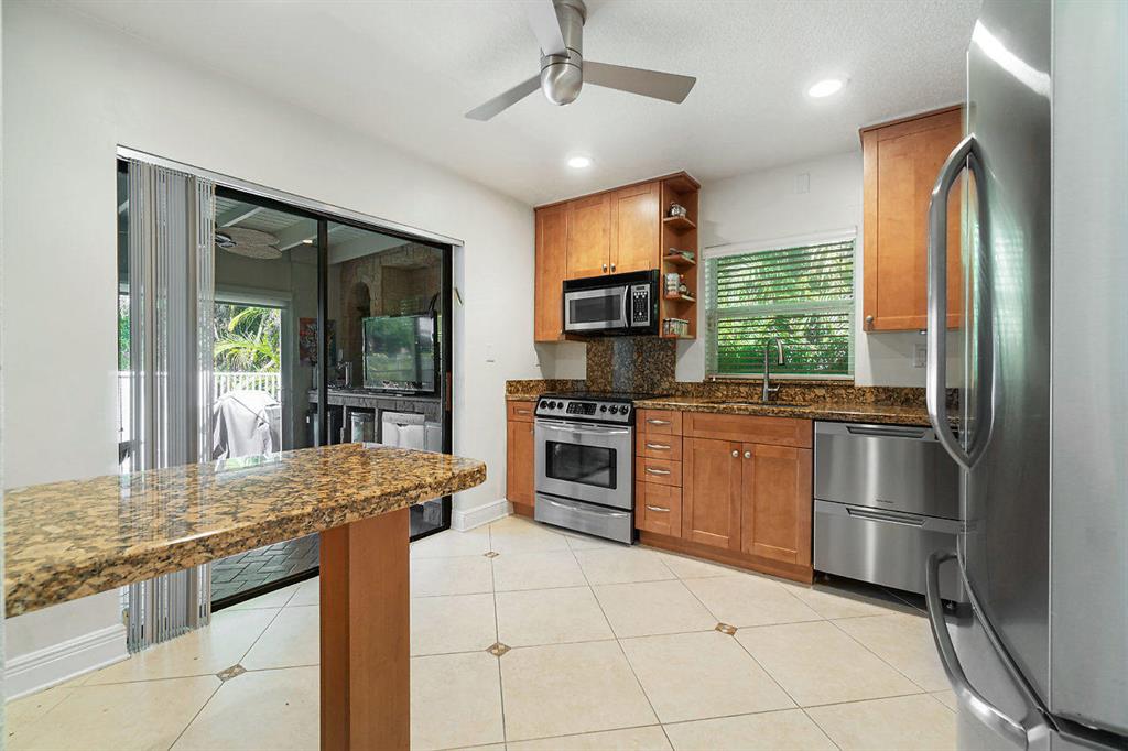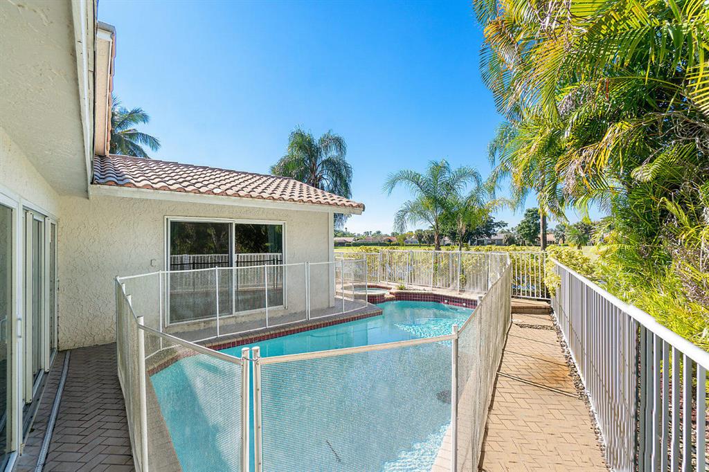 Gorgeous, turnkey, bright and airy pool home just hit the market and is ready for a quick move in! This property is a true gem with with an open floor plan, vaulted ceilings and is completely upgraded throughout. All windows and doors are hurricane impact as well. Relax on the patio with a fully equipped outdoor setup up including a mini refrigerator, wine cooler, keg tap and TV set up. This home sits in a prime location in Boca Greens where you will enjoy serene sunsets and views from the pool with a lake and golf course view.