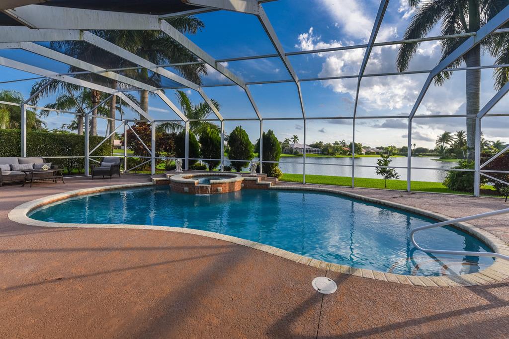 Boca Falls most breathtaking endless lake view! Best of the best! This 4 bedroom , 3 1/2 bath great room concept home will please the fussiest buyer! 24'' marble throughout all main living areas, wood floors in the bedrooms. Newly redone kitchen with high end appliances and island overlooks the magnificent salt water pool and spa with screened enclosure and unsurpassed lake views. Huge master suite with vaulted ceilings. Bathrooms have been updated. Newer a/c and water heater. Paver driveway with 3 car garage. Boca Falls features 24-hour gated manned security, clubhouse, pool area, basketball courts, 6 tennis courts, playground, gym...and so much more, Entrance and amenities were completely updated in 2016. Surrounded by 3 A-rated schools and South County Park. Look no further!