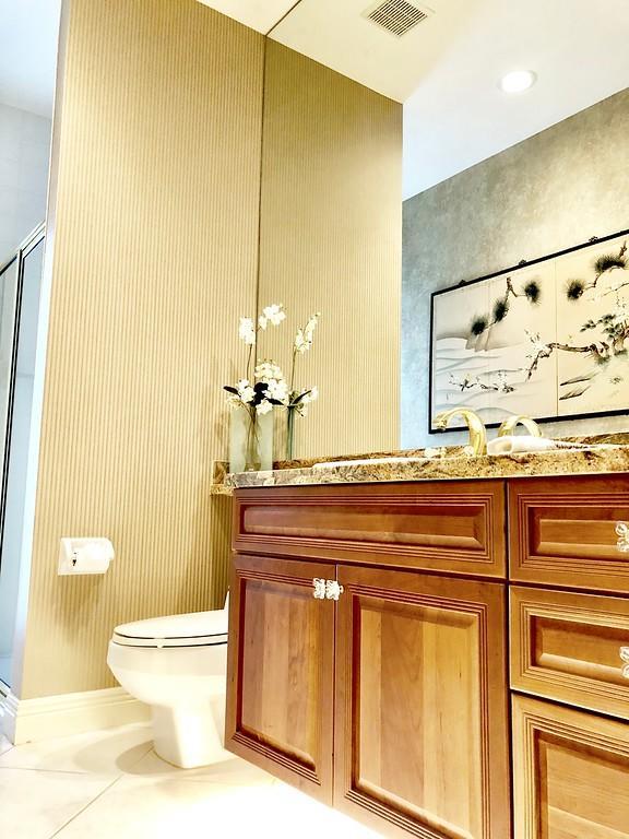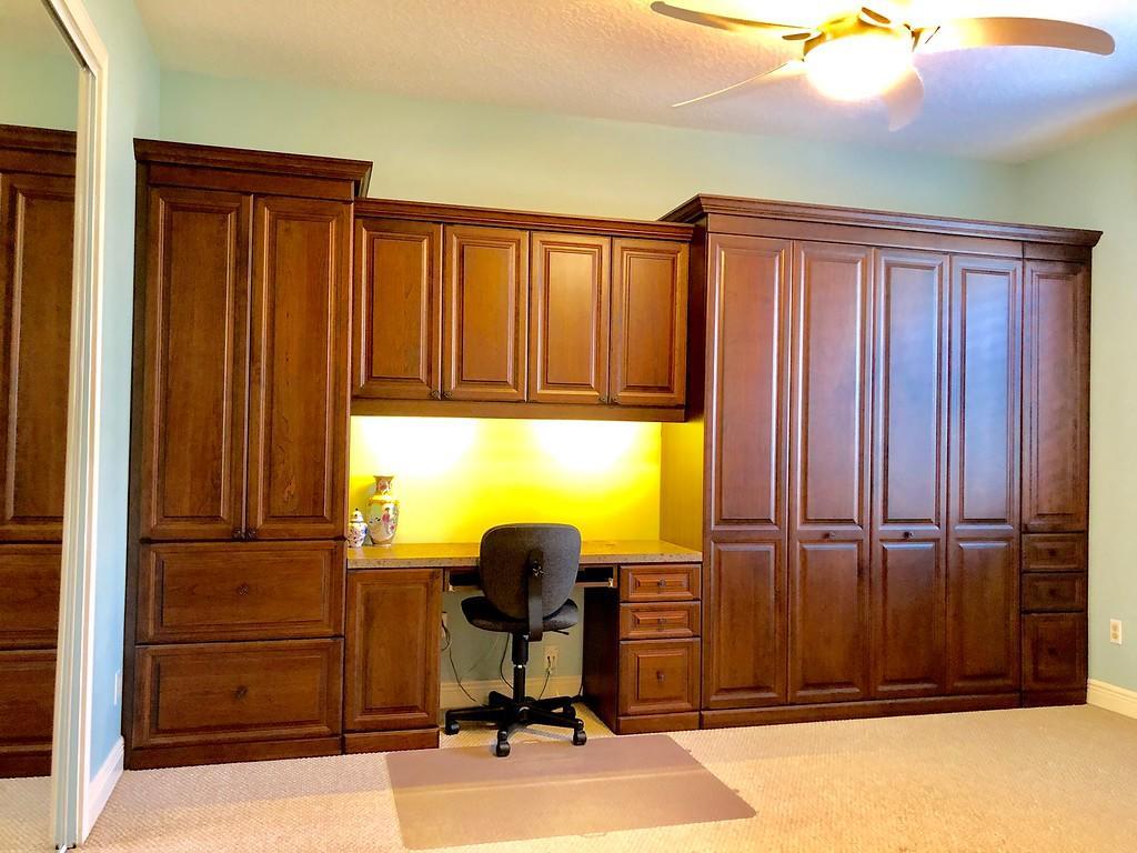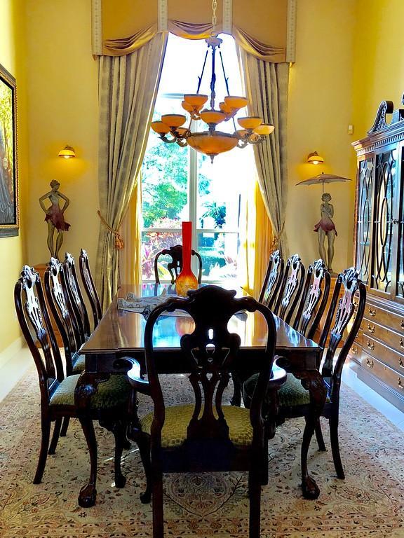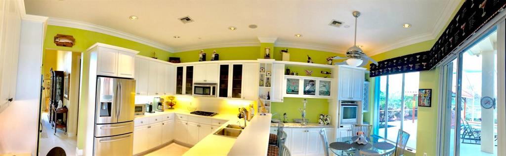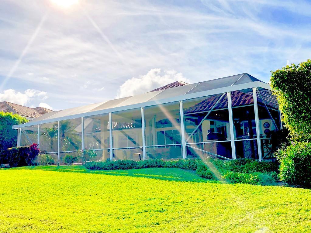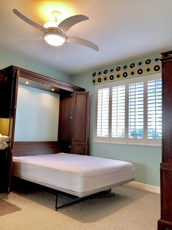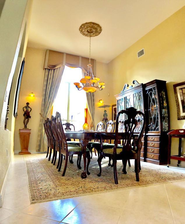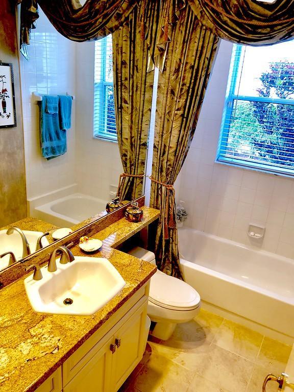 Egret Pointe custom home built on upgraded waterfront lot with expansive views of the lake, and the No.1 and No. 9 holes of the Legend course. Private, no cart path. NEW ROOF FEB.2018. The home has 3 bedrooms w/ bathrooms en suite, 4 renovated bathrooms and cabana bath with hurricane rated back door to pool . One level only,renovated and updated with the finestmaterials. Mahogany hurricane rated door as seen in Architectural Digest, accordion shutters,and hurricane rated garage doors. 3 car garagewith custom built cabinets. Convertible bedroom with built-in Murphy bed & office cabinets. Kitchen with all upscale gas and electric stainlesssteel appliances. Irrigation water from lake. Back deck with heated lap size pool, rock waterfall, covered bar and grill area.