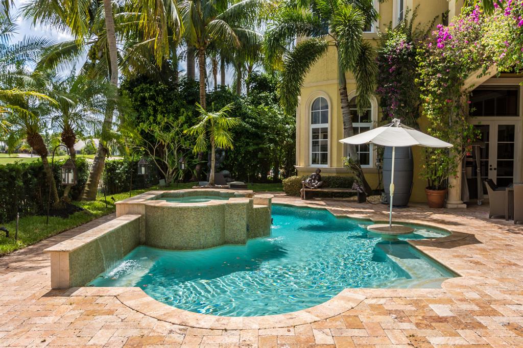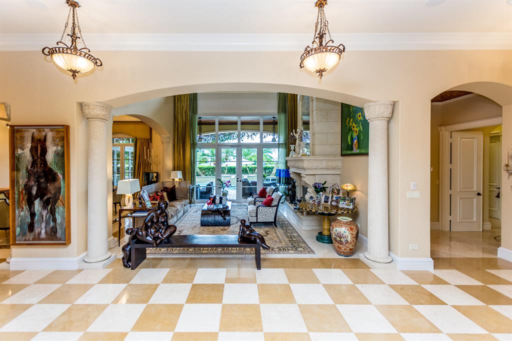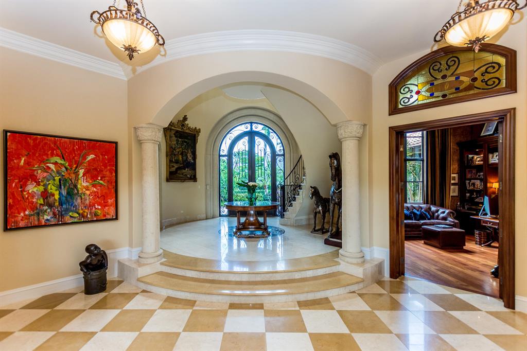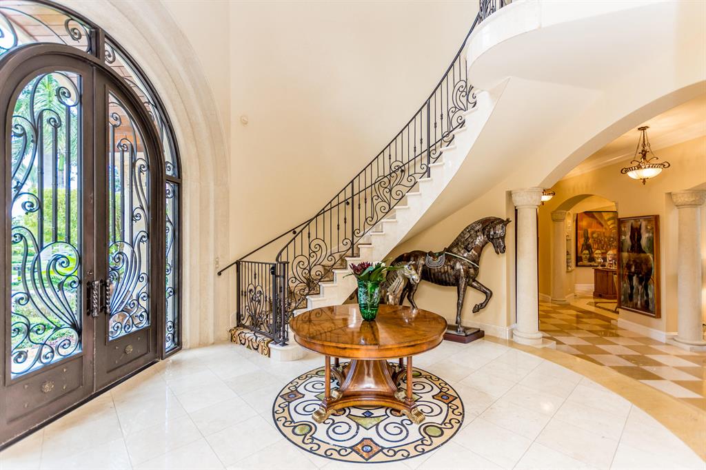Magnificent estate home boasts exquisite custom finishes throughout, an impressive rotunda foyer with elegant circular marble staircase, dramatic formal living room and dining room all designed for effortless entertaining or casual living. A spectacular custom gourmet kitchen overlooking family room and views of loggia, resort style pool and golf course and lake views beyond. The information herein is deemed reliable and subject to errors, omissions or changes without notice. All measurements are approximate.