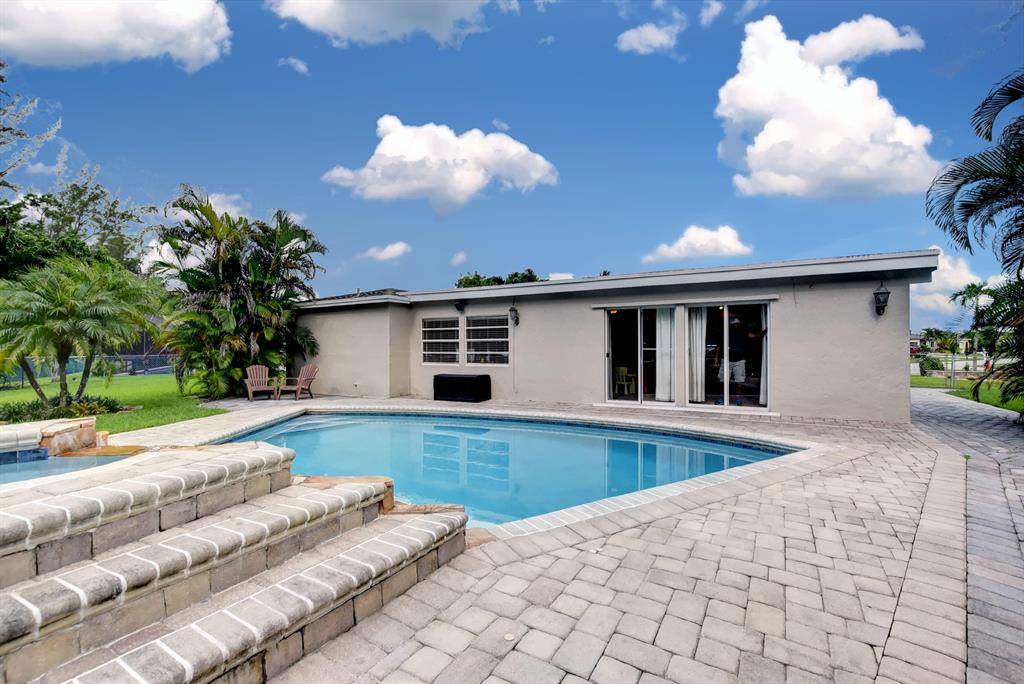 One of a KIND location! Private Oversized lot back with canal view. 3 bedroom, 2 bath, with familyroom and office/den. Kitchen has been updated with with wood cabinets and granite counter tops, stainless steel appliances, bathrooms have been updated, tile in main livingarea and laminate floors in bedrooms. BRAND NEW roof is being installed!! Exterior JUST painted, beautiful front patio recently tiled. Complete pool renovation within last 3 years. Extra storage space in backyard with new shed installed within last 3 years. Make this house your home!!
