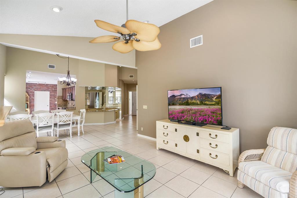 Low-maintenance living in a highly-desired neighborhood at an affordable price! Estate Sale, the home is sold as-is, see home inspection attached. HOA covers insurance, roof maintenance, landscaping, front lawn maintenance, exterior painting, basic cable and 24 hour manned gate entry. Roof was replaced appx 2010 and AC in 2016. Interior freshly painted 10/2019.One of the three bedrooms is currently set up to be an office and can easily be converted back to a bedroom. Ceramic tile flooring throughout. Floorplan is perfect for entertaining! You and your guests will have ample room to spread out around the pool and in the screened in patio, all overlooking the 10th hole of the beautiful Boca Golf Course. This is a non-mandatory membership community.