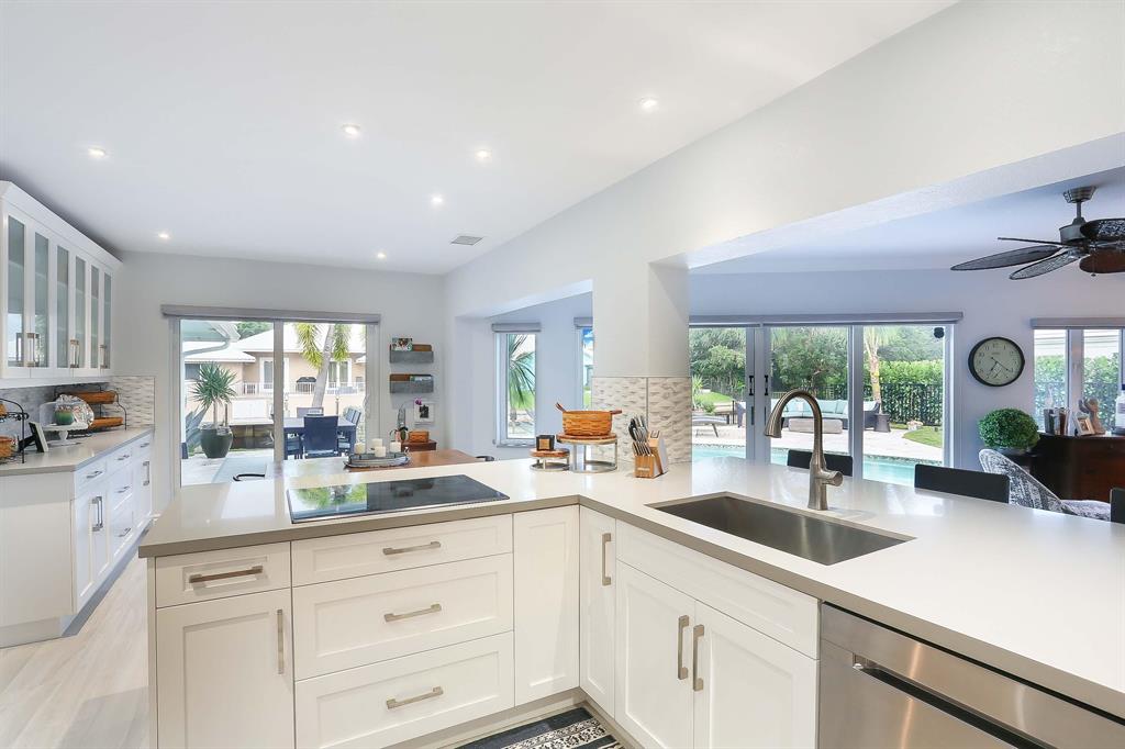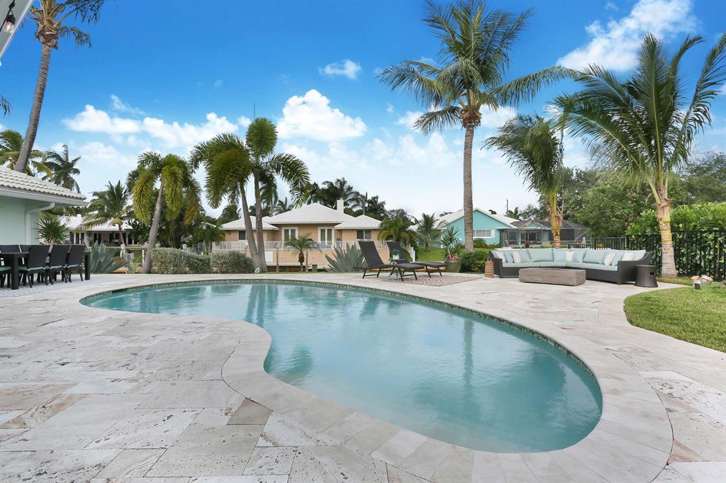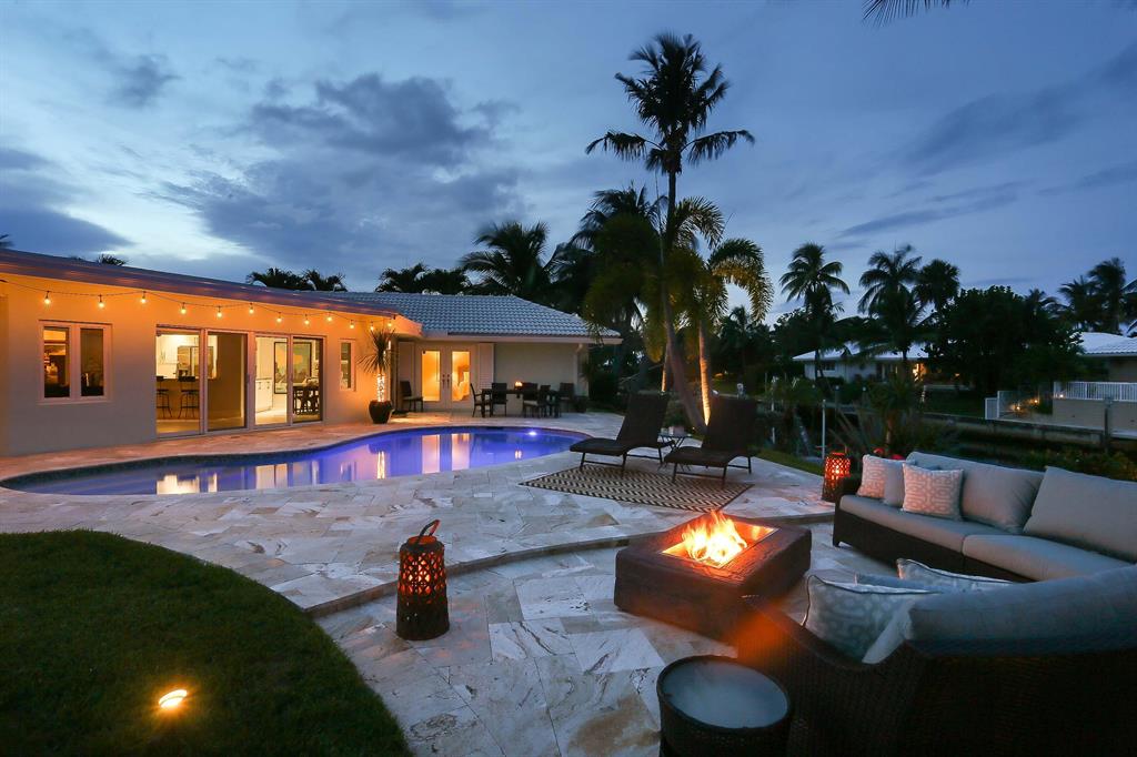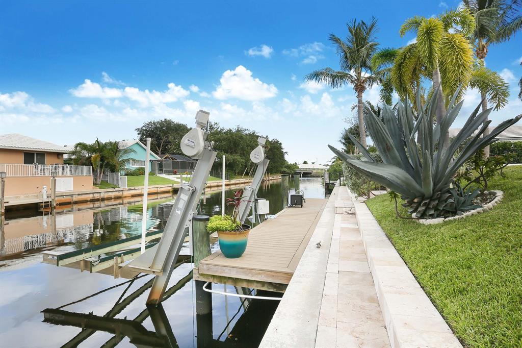 Magnificently remodeled with new kitchen, new flooring, impact windows & doors, new generator. Indoor laundry/utility room. Oversized lot with plenty of yard and outdoor entertainment options. East-facing backyard enjoys cool waterfront breezes. Ocean-access canal. Travertine pool deck and knee walls with steps to dock and 10,000-lb. boat lift. Absolutely sensational neighbors on a very pet-friendly ''island'' within Camino Gardens.