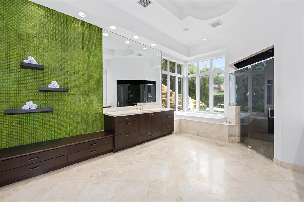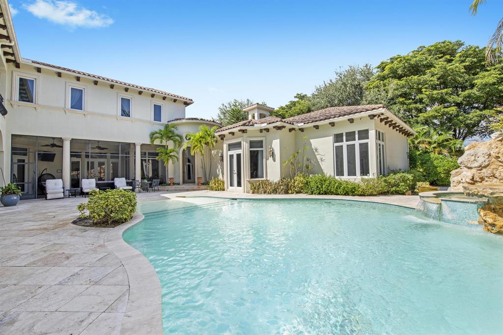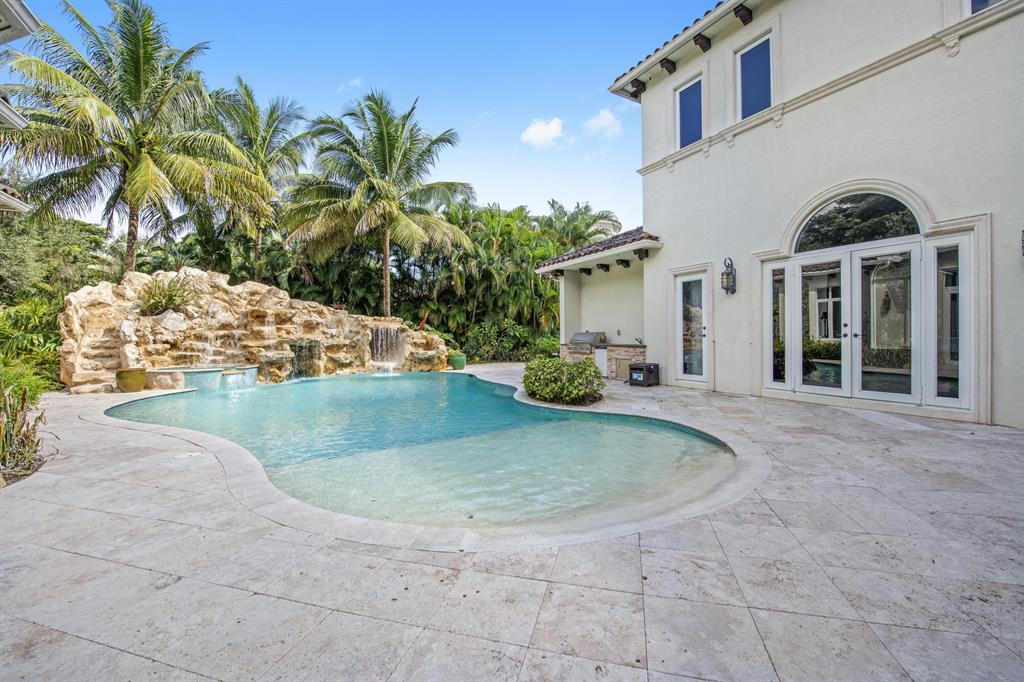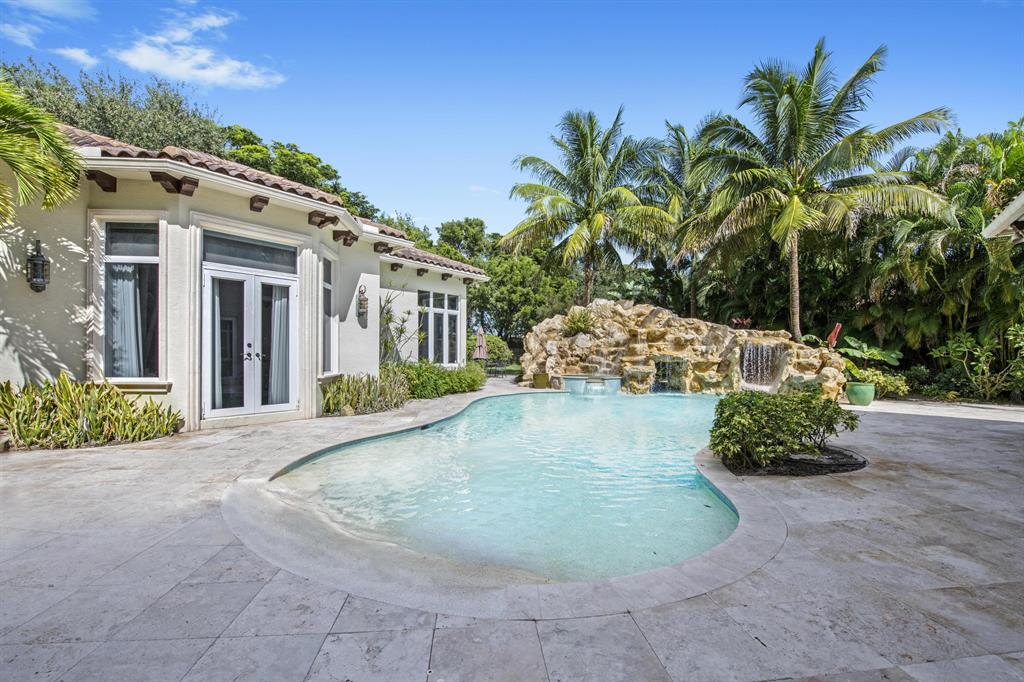 Live life more beautifully in this spectacular, showplace home located in desirable The Oaks at Boca Raton. Nestled on almost one-half acre, you'll enjoy privacy, amenities, plus all of the upgrades you require. Designer details include marble and hardwood flooring, custom windows and doorways, vaulted, tray, and exposed beam ceilings. Outdoor space includes resort-style pool with grotto, waterfall, and stone water slide plus expansive terrace space with covered grilling area and room for seating, dining, and entertaining. Separate guesthouse offers a perfect spot for visitors or an ideal in-law apartment. Stunning open kitchen includes sleek, modern cabinetry, upgraded stainless steel appliances, and seated bar space. Over $200K in upgrades! Furniture Negotiable.