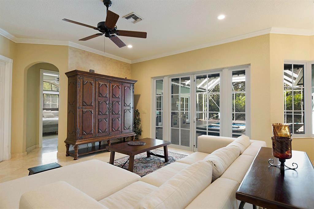 Rare Grand Courtyard on over sized treed lot. Home Boasts double circular driveway with wall(Can Gate). New Grey Tile Roof 8ft impact windows and doors fireplace and 10 ceilings throughout. very large, yet private courtyard with covered paito mature fruit trees fire pit and much more. detached guest house with rental income if preferred. Dont miss this sprawling single level 3800 sq/ft home. 3 way split floor plan. addison mizner/boca middle/boca high. see broker remarks to show