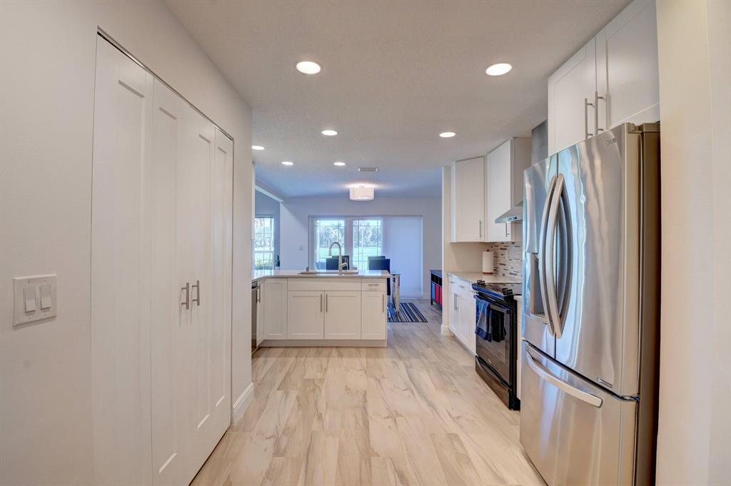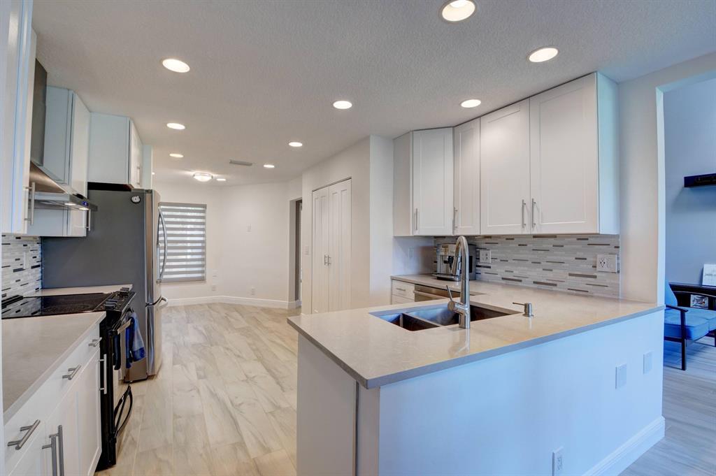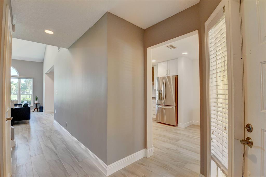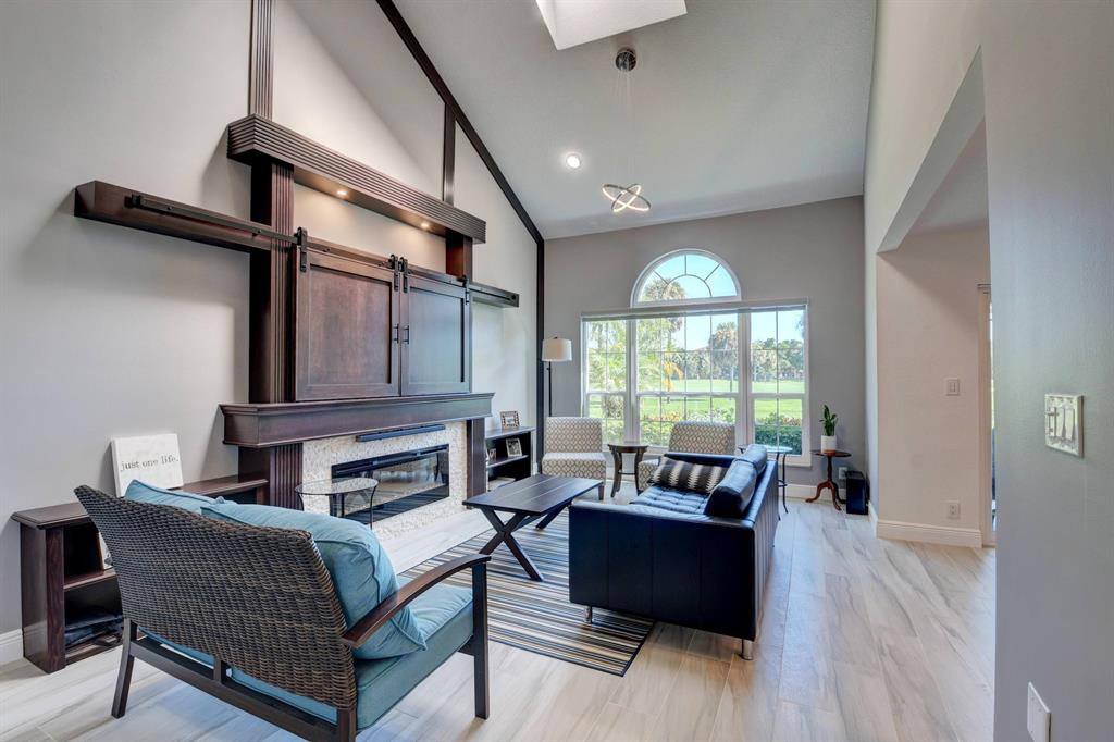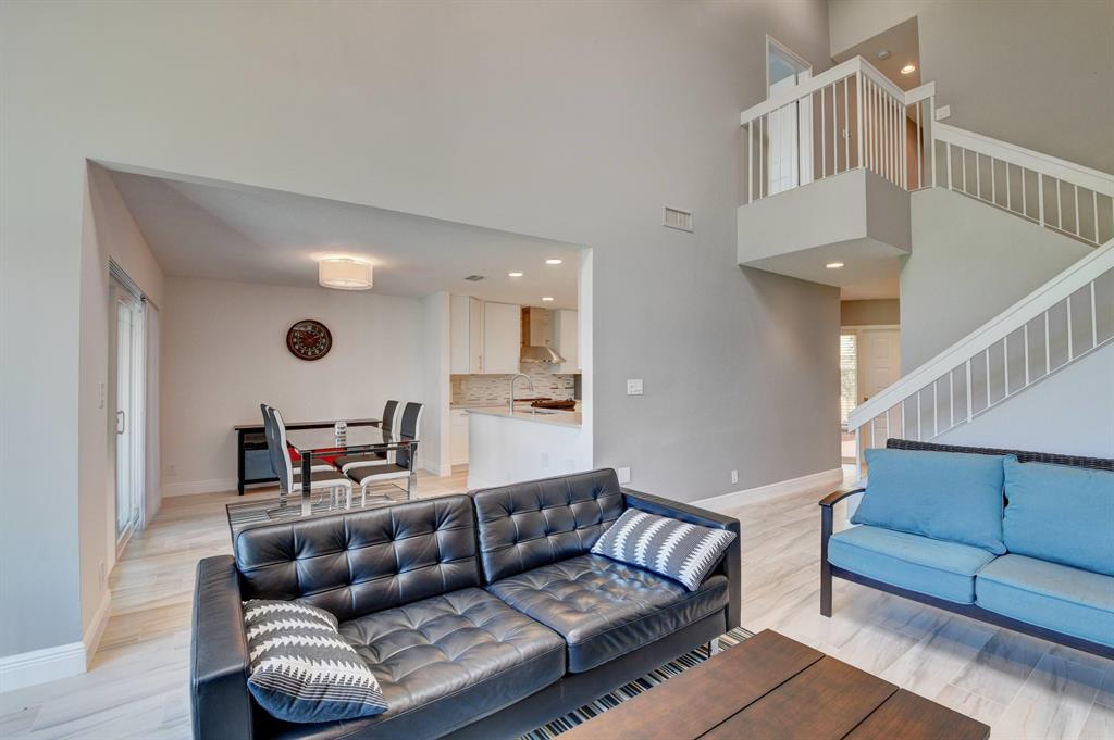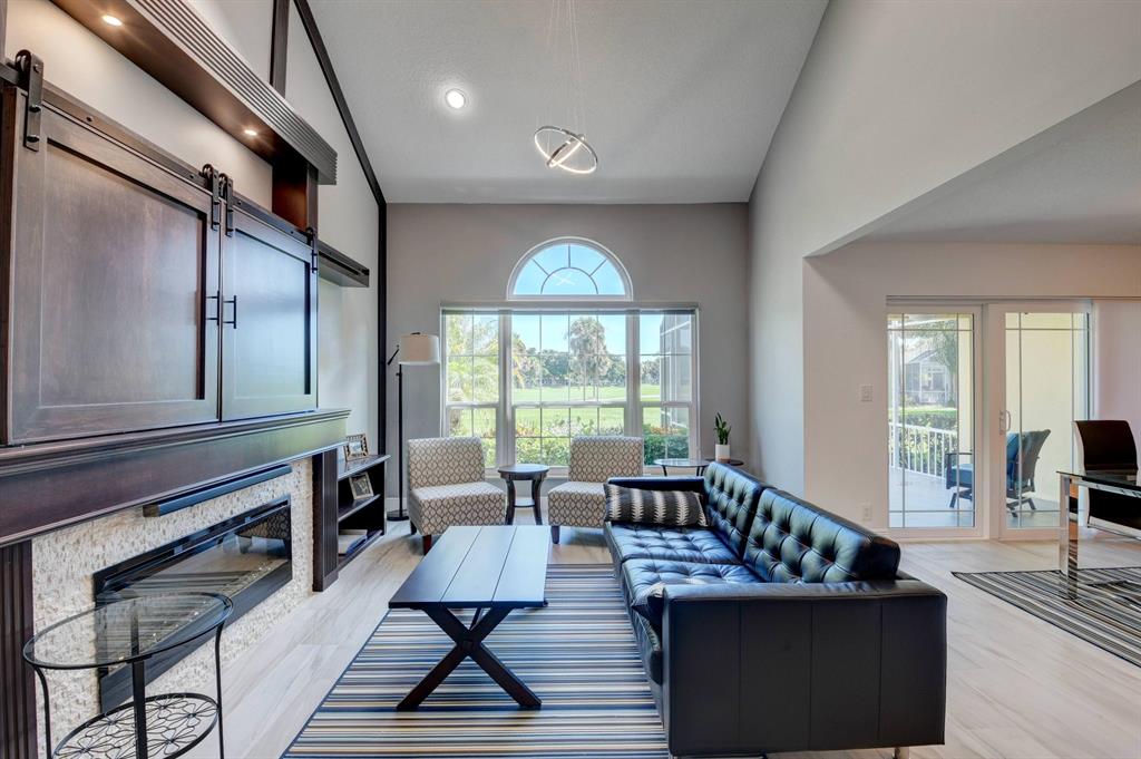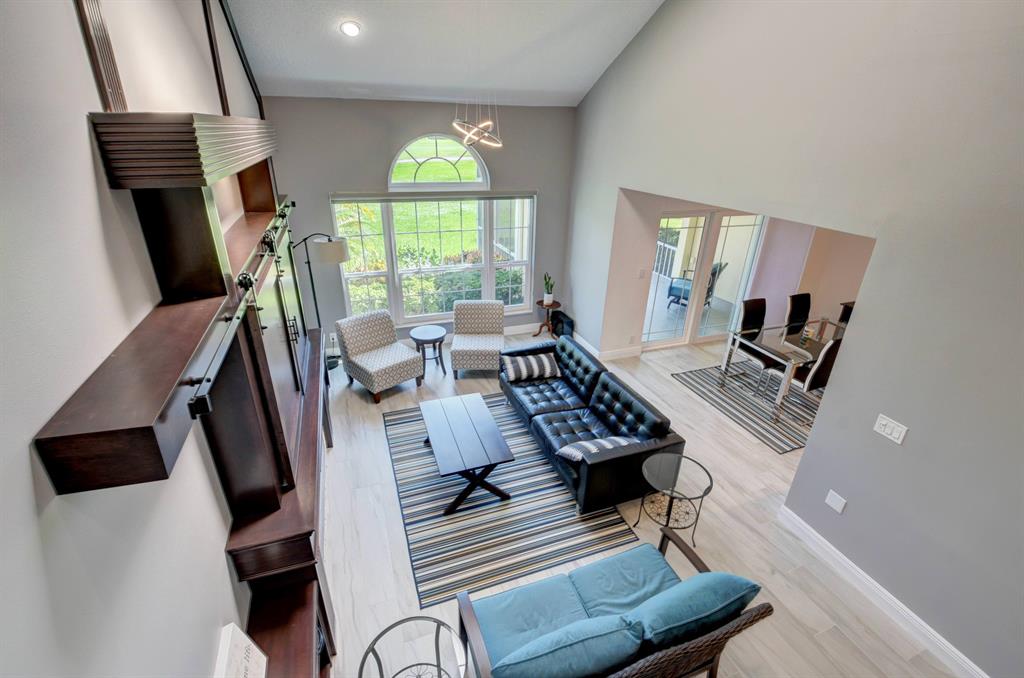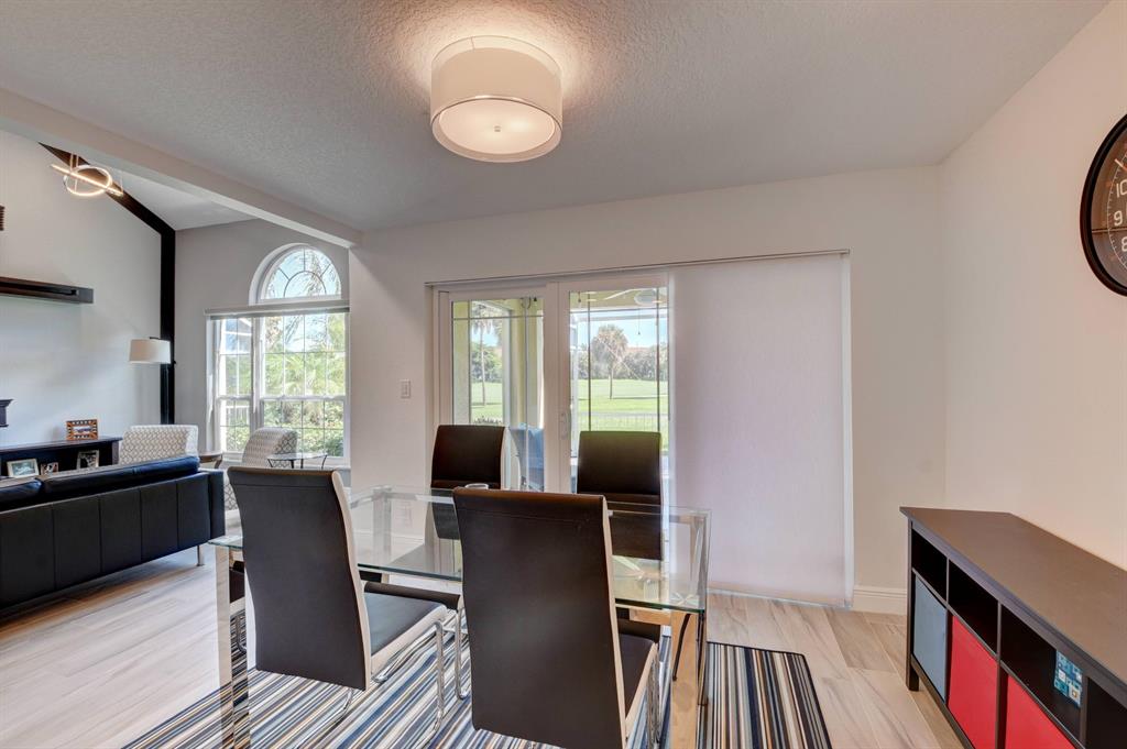 Gorgeous golf course views from this recently renovated town home with modern and contemporary furnishings. All new impact windows and sliders enhance the open view from 2nd floor master suite with large open deck, vaulted ceilings, walk-in closet and large updated bath with separate shower. Open modern kitchen with all new appliances, laundry closet and large eat in area . Living area has high ceilings, all new light wood like tile and a gorgeous wood accent built-in. The separate dining area overlooks the covered patio with a brand new screen enclosure and just finished beautiful outdoor tile. This home is a must see ***NO MANDATORY MEMBERSHIP REQUIRED**