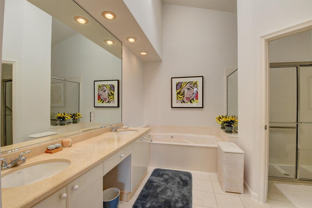 Beautiful 3 bedroom/3 bath one story pool home in sought after Santa Barbara community. Large great room with high ceilings and windows, overlooks tropically lush heated pool and lake. Renovated kitchen with granite countertops and newer stainless steel appliances, opens to the spacious and bright living area. Three way split bedroom floorplan is perfect for families and guests, with two generous bedrooms and a master bedroom overlooking the lake and pool area. This rarely used home is in move in condition with a new roof, air conditioner, and hurricane garage door. Home was also freshly painted. Santa Barbara has a clubhouse with pool, tennis and fitness. Ideally located in central Boca Raton in an excellent school district, and close to dining, shopping and entertainment.