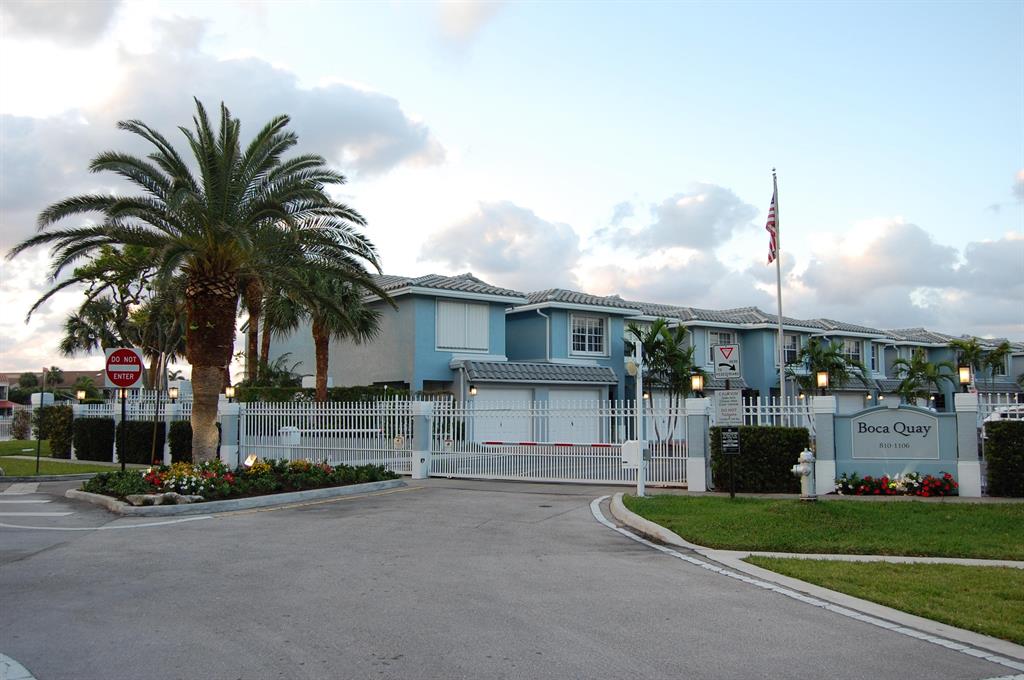 LOVELY 2 BEDROOM, 2.5 BATH TOWNHOUSE IN EAST BOCA RATON INTRACOASTAL GATED COMMUNITY OF BOCA QUAY. THIS 2 LEVEL UNIT FEATURES GRAY KITCHEN CABINETS WITH GRANITE COUNTERTOPS & STAINLESS STEEL APPLIANCES, 2 MASTER BATHROOMS EACH WITH FULL BATHROOM, FULL SIZE WASHER & DRYER ON 2ND LEVEL, ACCORDION SHUTTERS & FENCED REAR PATIO FOR PRIVACY. SHORT WALK TO HEATED COMMUNITY POOL. ASSIGNED PARKING SPACE, WATER INCLUDED WITH HOA DUES, PET & VEHICLE RESTRICTIONS. NO LEASE 1ST YEAR OF OWNERSHIP; EAST OF US-1; CLOSE TO BEACHES, SHOPPING & RESTAURANTS IN BOCA RATON & DELRAY BEACH.