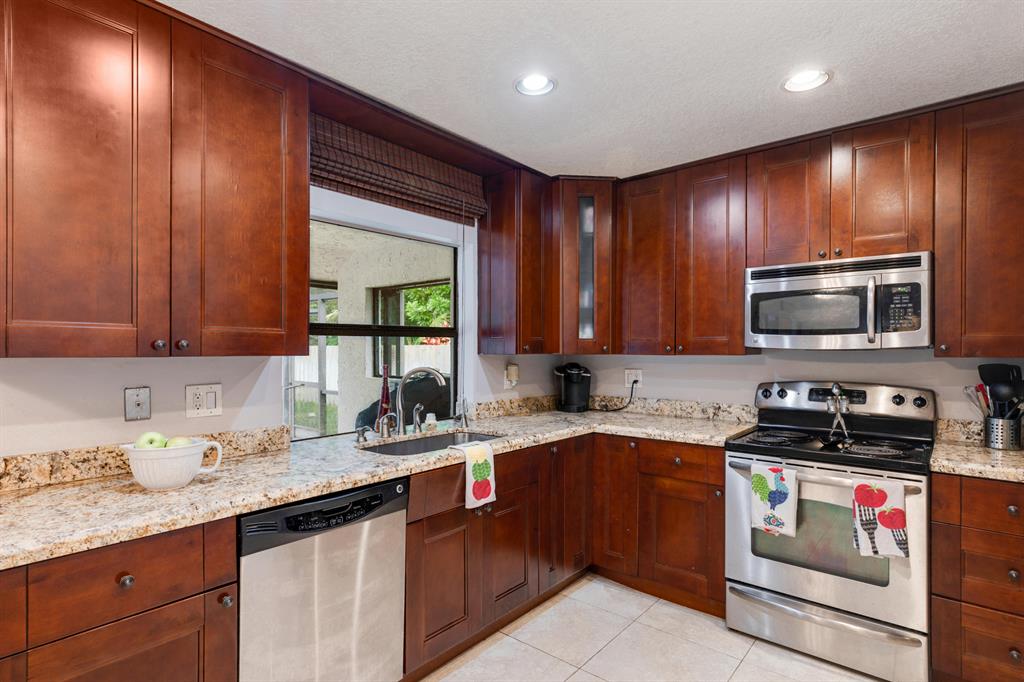 Every picture tells the story of this amazing 3 bedroom, 2 bath home with a den/office that could easily be used as a 4th bedroom. The 2nd bedroom is large enough to be a master, and the bathroom could become a part of it. This bedroom also has access to the cozy patio area at the front of the home. The home boasts a huge yard, with a newer fence (2017), impact windows in master bedroom (2016) enclosed pool, with plenty of room on the deck. The roof was replaced in 2007, AC in 2016, newer appliances and the home has been impeccably maintained and loved by the owner. Great Schools, and one entrance in and out of the community make this the best choice out there!