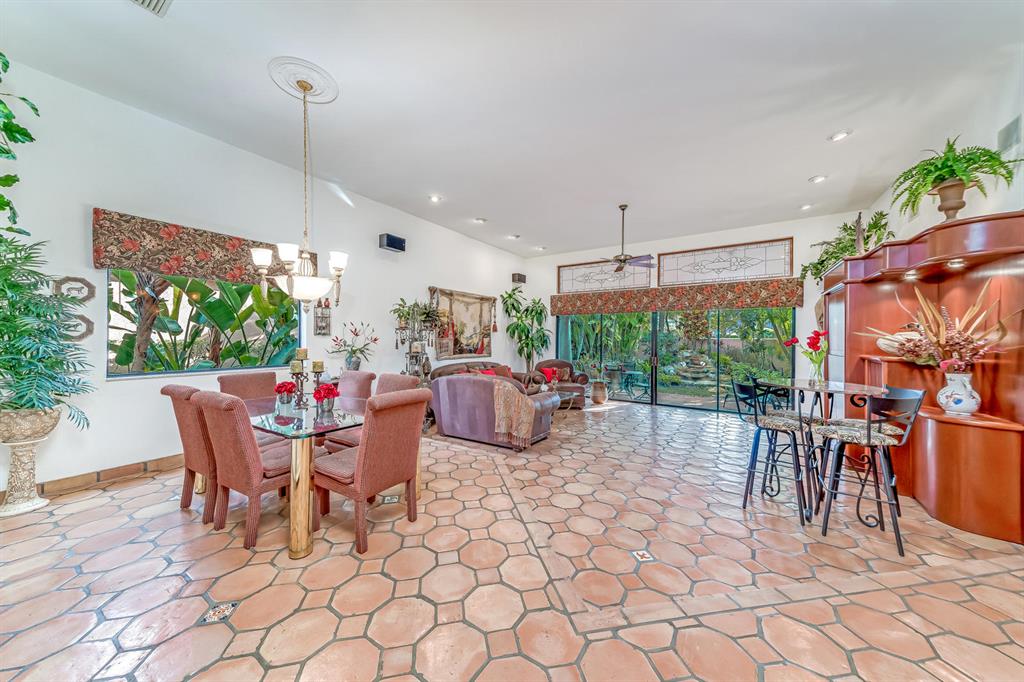 Spectacular Mediterranean One Story Rarely Available ''Villa Santorini'' Model Home Featuring 2 Spacious Bedrooms(bigger than most 3 bedroom homes), 2 Baths & a 2 Car Garage Plus a covered patio area overlooks a lush landscape including a waterfall. Enter through the private & elegant wrought iron double gate which opens to a tropical paradise that starts in the courtyard and continues to the side and backyard. Double door entranceway with an arched and leaded glass window overhead. Dramatic entrance w/soaring cathedral ceilings & picturesque windows that flood the inside with natural light. Enjoy the sense of openness, volume, & space.