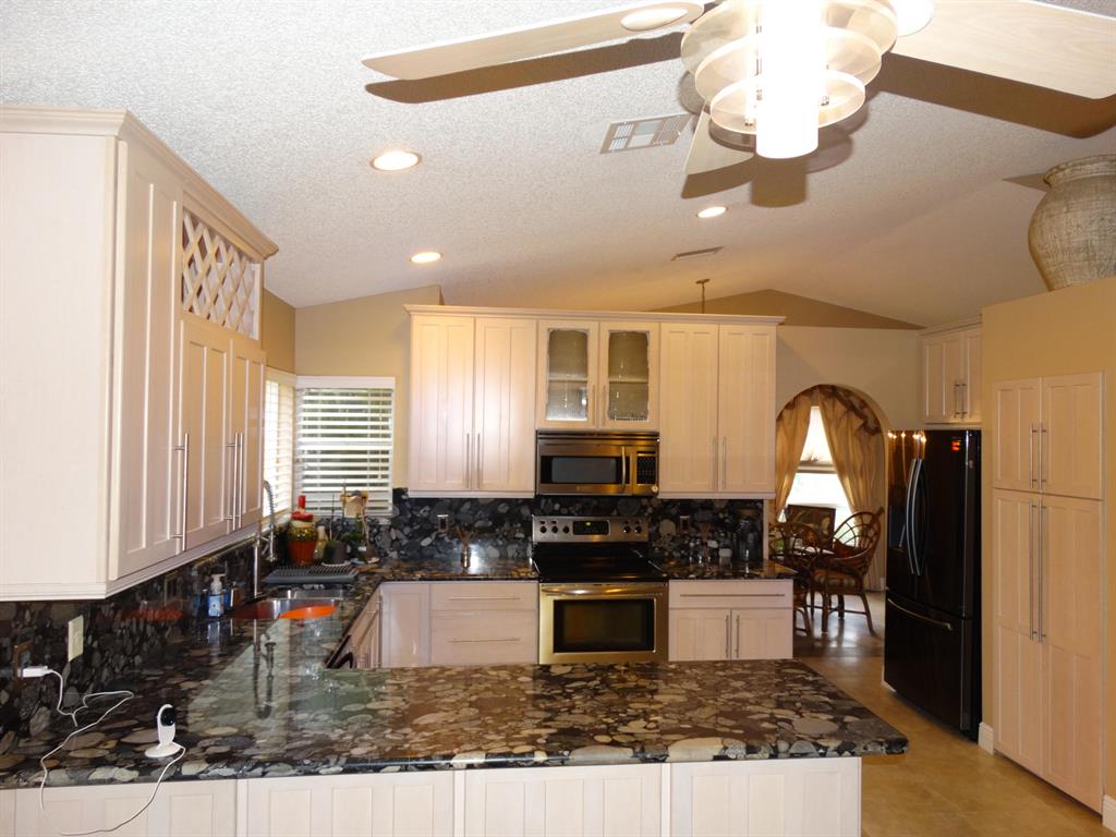 Don't miss out on this gorgeous home in Boca Isles North located in a spacious corner lot, featuring a stunning kitchen with gorgeous countertops and stainless steel appliances. 2 garage spaces have been converted into a bedroom with a closet and central a/c making it a 5 bedroom house! Vacation within your own home in this ample backyard with a beautiful pool and gorgeous landscaping that offers privacy.
