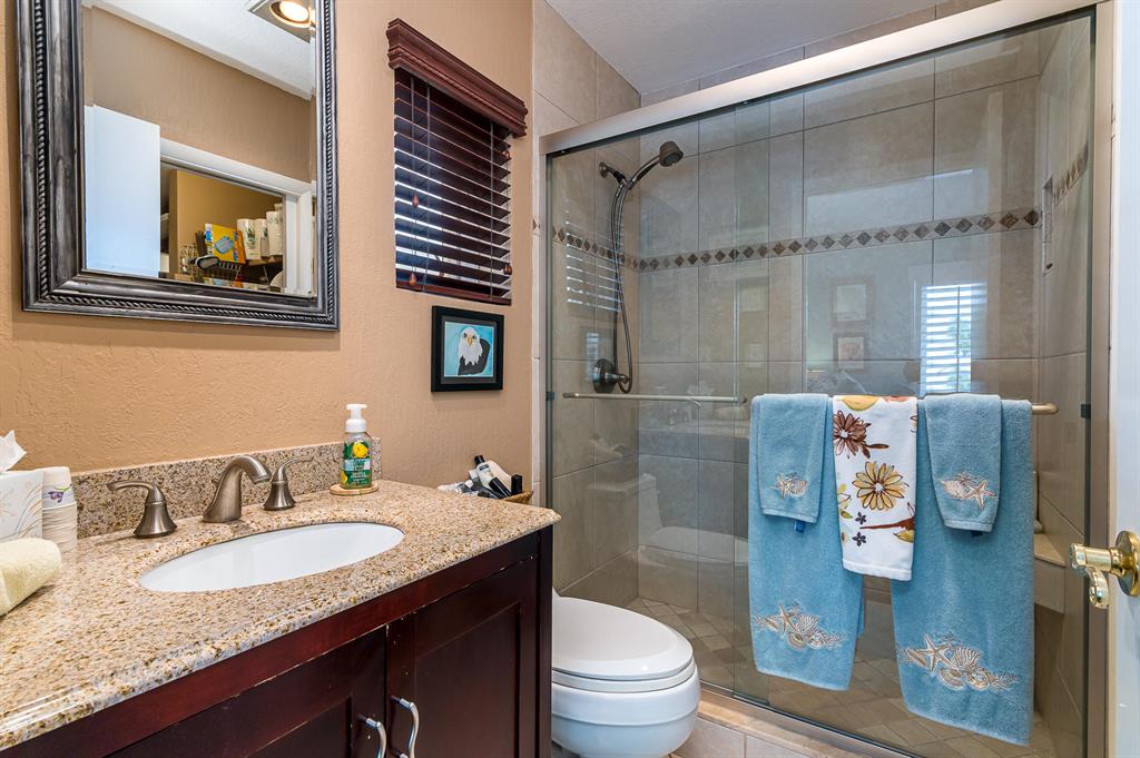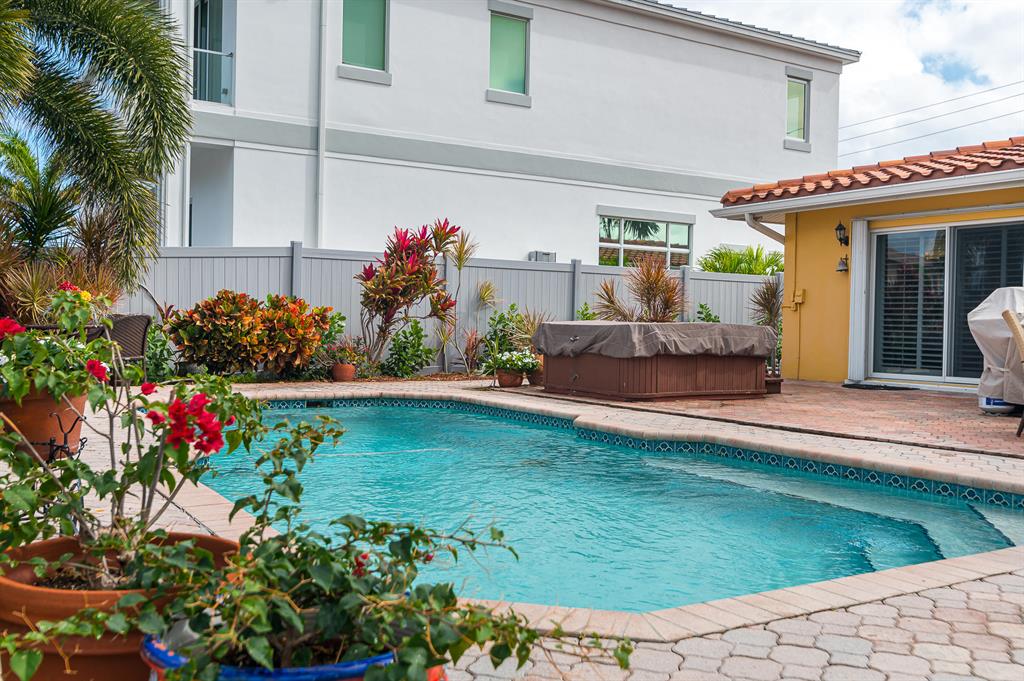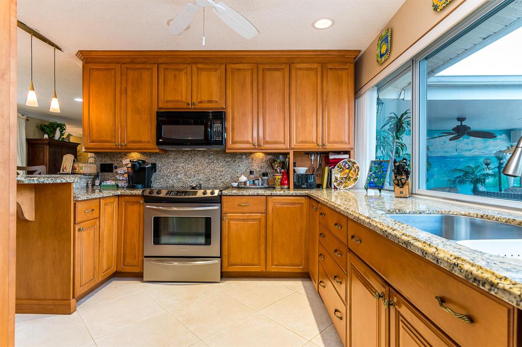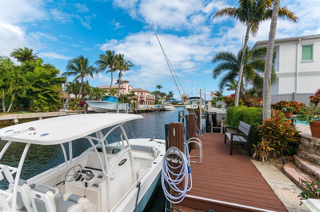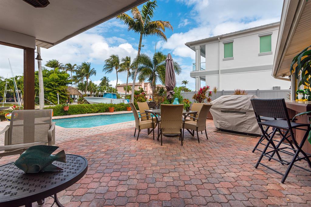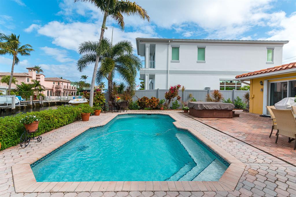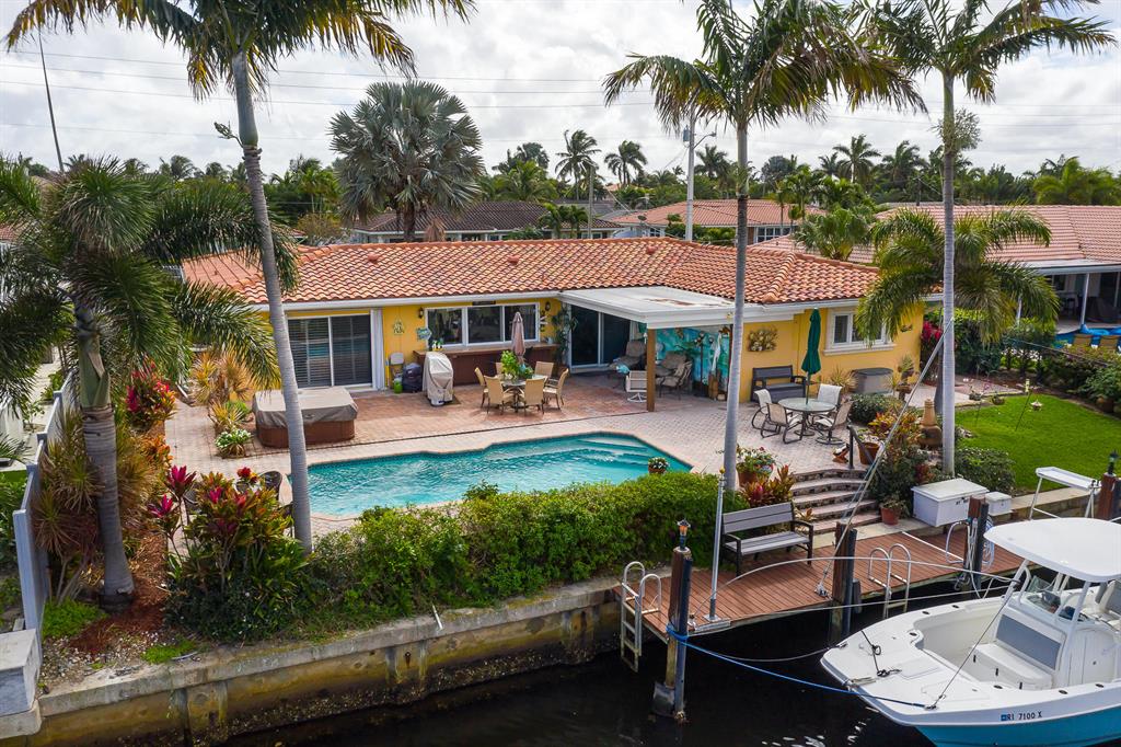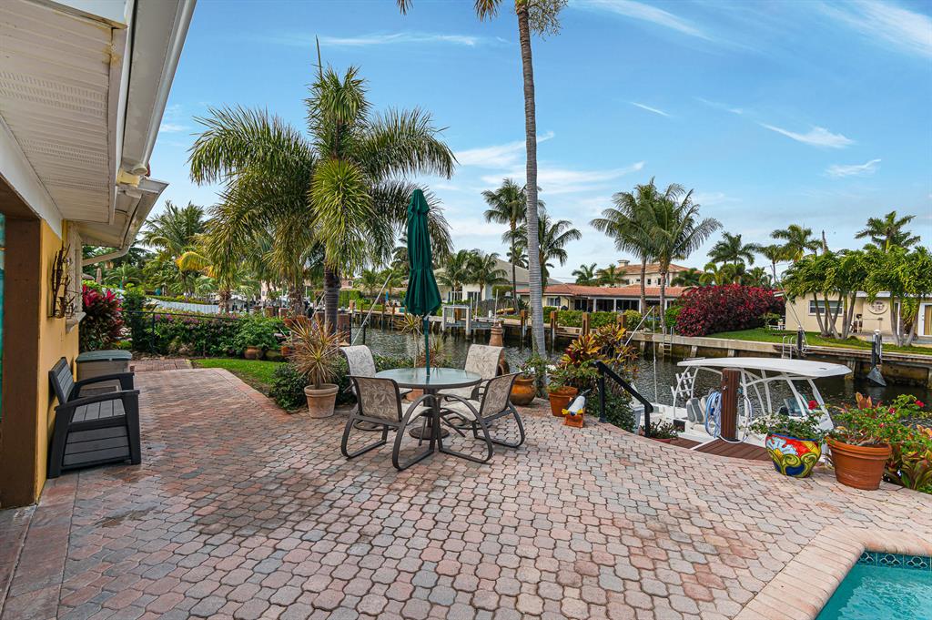 Boaters Paradise! Completely updated home with 80' of waterfront! Custom wood cabinetry with granite countertops and stainless steel appliances, large living & dining room, master suite with separate shower & roman tub, huge walk in closet. Large guest suite with private full bath, nice size 3rd bedroom currently set up as an office, interior laundry room. Newer roof & air conditioner, Impact sliding glass doors & kitchen windows, full hurricane protection with according and panel shutters. Bright & Open back yard area for entertaining with covered patio, heated pool & spa. Brick Paver Driveway. The home sits a few lots from the intracoastal waterway on a wide canal with a turn basin for large yachts. This Is A Must See!!