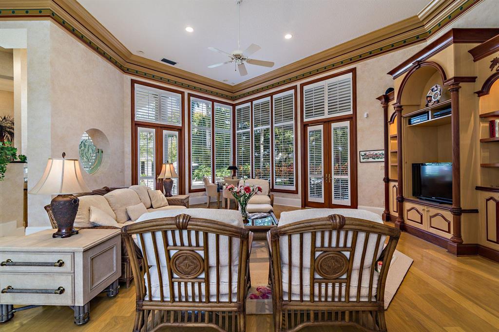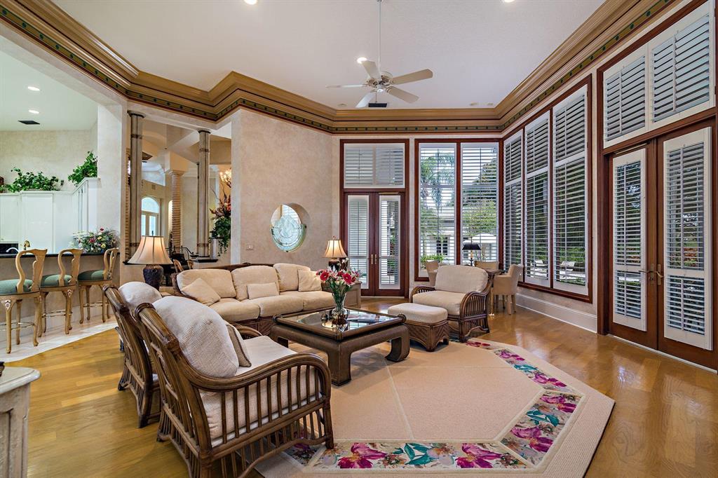 This sprawling estate sits on more than 3/4 acre in the Estates Section on the prestigious Bear Lakes golf course. Built with the finest detail in 1994, this home boasts soaring ceilings, floor to ceiling windows, a circular drive and separate driveway to enter the 3 car garage. Luxurious living, dining and entertainment await with custom finishes, 4 br, 4.5 ba including 2 master suites, a centrally located kitchen, wet bar and private den. With 5706 square feet under air this is one of the largest homes in Bear Lakes. The backyard features a spectacular setting on the 17th hole with a custom pool, barbecue and private cabana. Optional membership to the recent $9 mil renovated golf club offer a golf and social experience like no other. All located near Palm Beach Island and the airport.