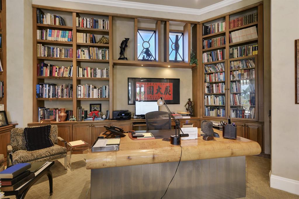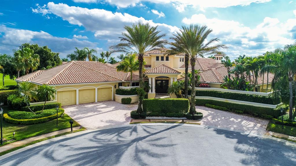 Prepare to be captivated the moment you drive into the cul-de-sac and are welcomed by this impressive Mediterranean home with 280 degree panoramic lakefront views and golf course views in the exclusive community of St. Andrews Country Club. This refined European-inspired masterpiece is situated on a spectacular .86 acre trophy lot. A graceful entry sets the timeless tone of this 5 bedroom, 7.1 bath residence with 7,601 square feet under air. The classic look is fashioned with custom architectural elements, exquisite designer finishes, marble floors and stunning ceiling treatments throughout. The flow functions beautifully for entertaining with French doors to the outdoor living area and private pool and spa in a relaxing resort-like oasis surrounded by huge palms, trees, grass, and lush