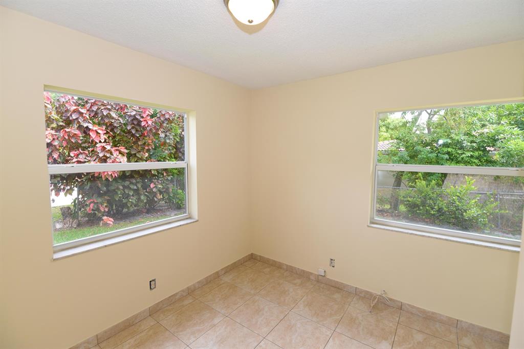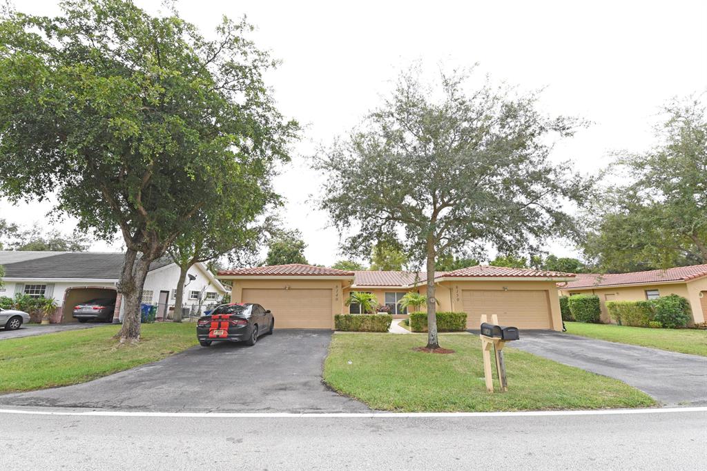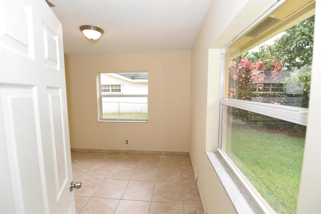 This ATTACHED single family home has a master bedroom suite, large 2nd bedroom and a den that can be used as a 3rd bedroom. The freshly painted home boast an updated open kitchen and spacious dining area. Another plus is that the home has tile floor all throughout. The property also includes a spacious fenced in backyard and a massive two car garage. Furthermore the home features a long driveway. THE ROOF IS ONLY 2 YEARS NEW! New blinds have also been recently added. Hurricane panels included!!! Also there are NO HOA DUES!!!