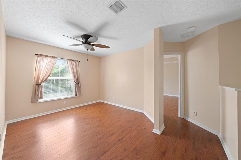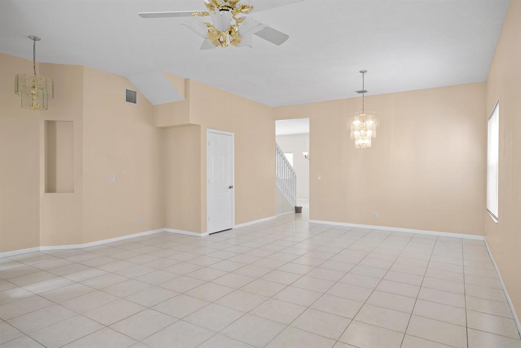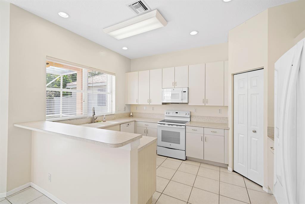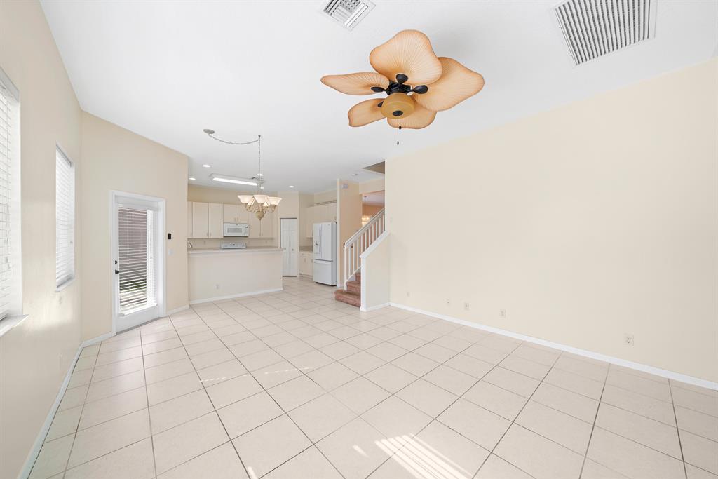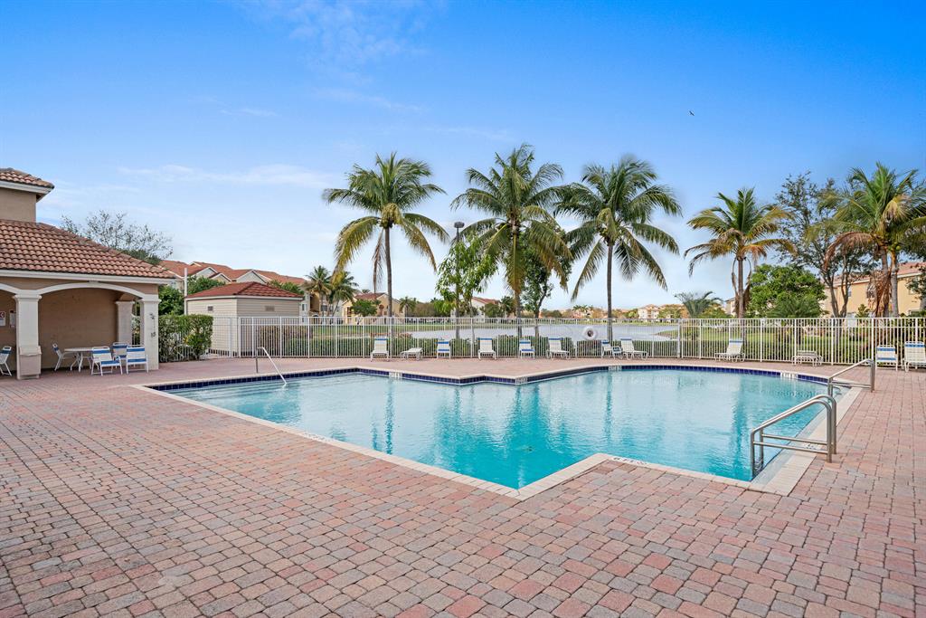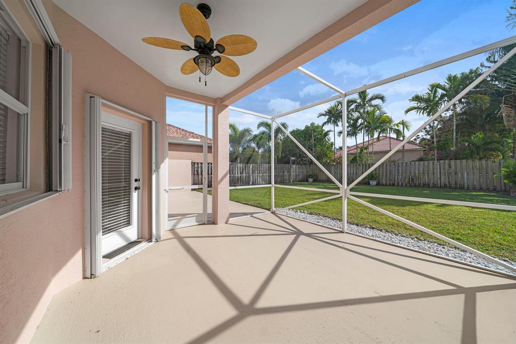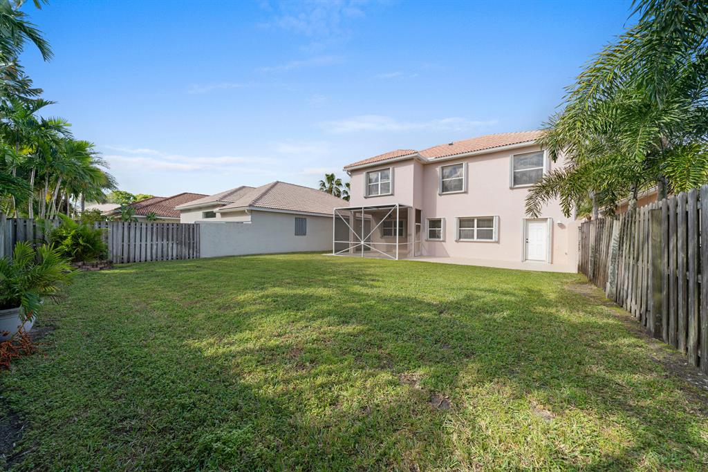 This large 4-bedroom Plus Den home has full Accordion Hurricane shutters protection, and new A/C (2015). Big fenced yard boasts a covered and screened patio Plus an open patio. Newer kitchen appliances (2016), and counter seating for 4. All tile downstairs, and wood laminate upstairs. Master has 2 walk-in closets, dual sinks, vanity, roman tub, and oversized shower. Separate living and family and laundry rooms. Located in the premium double-gated Catalina section. Community features: 2 pools, 2 tennis courts, 2 kids' play areas, basketball court, front lawn maintenance, 24-hour guard-gated.