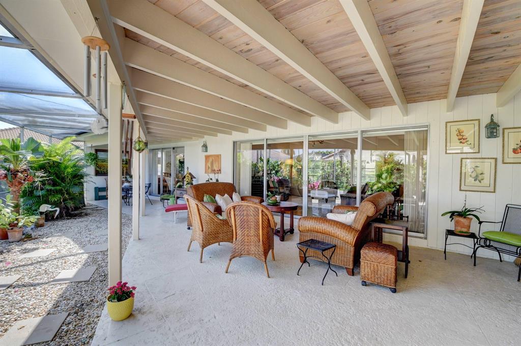 Simple and refined 2BD/2.5BA/2 car gar. in quiet Hidden Valley (East Boca) with gorgeous accents like vaulted wood ceilings and bold beams and wood flooring extended throughout. The bright kitchen invites tons of light in and is equipped with stainless steal appliances. This home offers an excellent layout for privacy with the second bedroom on the opposing side of the home equipped with a private bath. The master suit hosts a walk-in closet and also a private bath. You'll notice each room displays wall to wall glass doors that expose the over-sized screened in porch so you may enjoy the sunrises from the back and sunsets from the front porch.