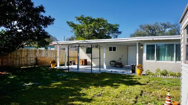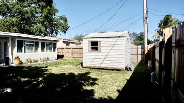 WELCOME YOUR BUYER HOME TO THIS LOVELY, WELL KEPT 3/1, UPDATED BATHROOM, GRANITE COUNTER TOPS, STAINLESS STEEL APPLIANCES, FRENCH DOORS OPEN TO COVERED PATIO. HURRICANE PROOF WINDOWS AND DOORS THROUGHOUT THE HOUSE, FENCED IN BACKYARD WITH METAL DOORS ON BOTH SIDES, UTILITY/LAUNDRY ROOM WITH AMPLE SHELVING IN ADDITION TO WASHER/DRYER, WATER DISPENSER, ALARM SYSTEM, FRESHLY PAINTED EXTERIOR. HALF-CIRCLE DRIVEWAY FOR EXTRA PARKING, GAS STOVE, NEWER ROOF 4 Yrs., NEW DRAINAGE THREE MONTHS AGO, NEWER SHED 10X10 FOR EXTRA STORAGE, NEWER AC 4 Yrs, NEW ELECTRICAL BOX WITH GENERATOR CONNECTION, TANKLESS WATER HEATER 4 Yrs. HUGE YARD WITH ROOM FOR A POOL!!! YOU DON'T WANT TO MISS THIS ONE, IT WILL GO FAST!!!