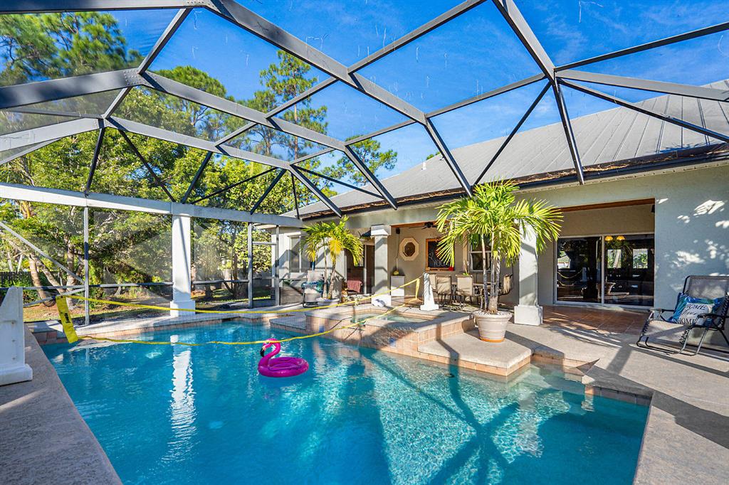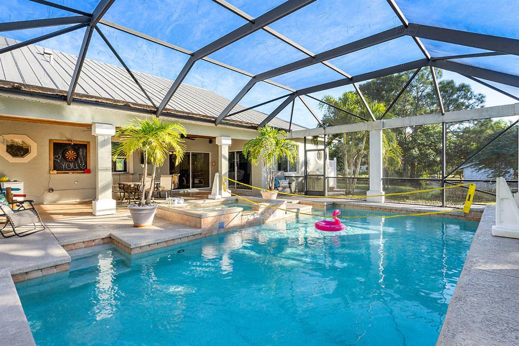 WELCOME HOME to serenity and country living at its best! This charming (3) extra large bedroom, (2) full bath, oversized (2) car garage home features; a spectacular screened in saltwater game pool with 7+ person spa, premium fully fenced lot with no pond and hello peace of mind and insurance savings from the METAL ROOF!ENTERING the new double front doors brings you into; a huge foyer, very functionable design, split floor plan, pool view from virtually every room and spacious kitchen boasting; new granite countertops, stainless steel appliance package, reverse osmosis system, five person bar and pass through kitchen window that opens to the large covered lanai. Passing through you will discover walk-in closets in every bedroom and countless new items throughout. Such as; superb
