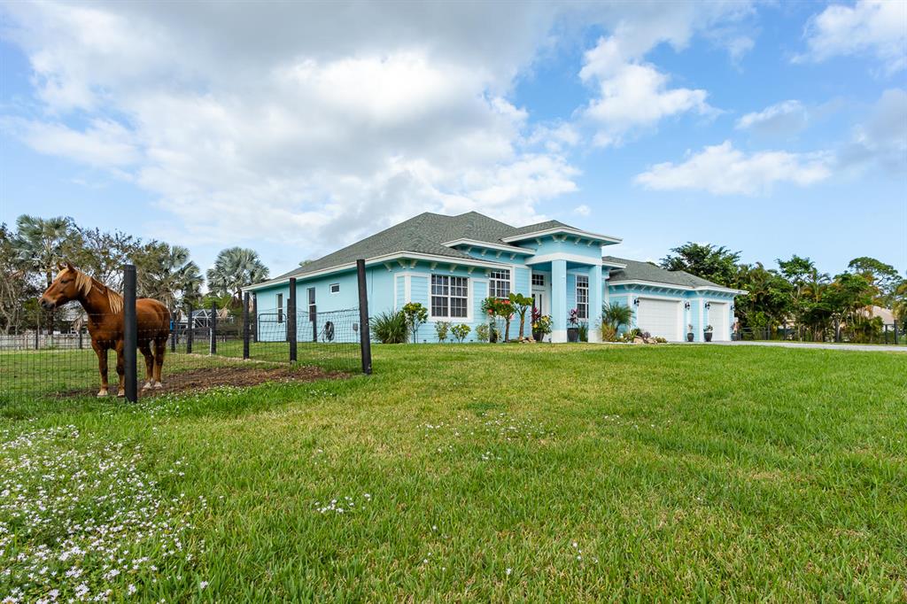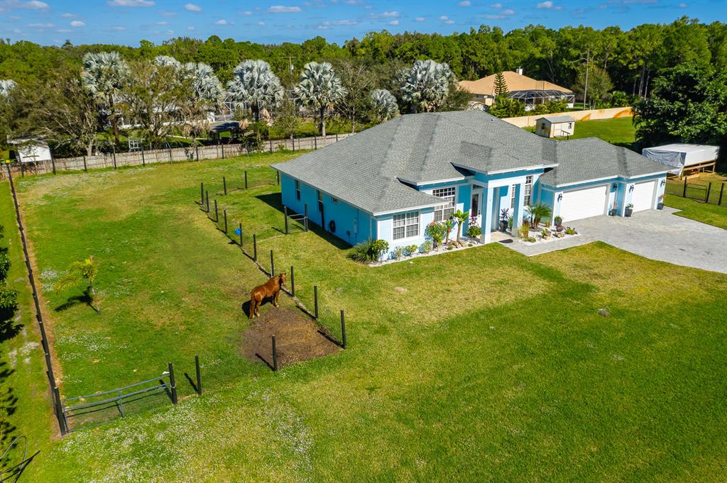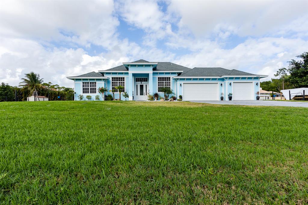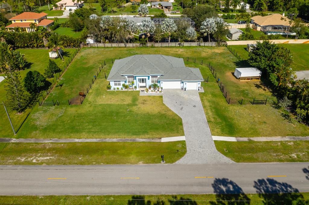 AN ABSOLUTE STUNNER! High quality, newly built ranch home on a paved road! This residence sits on a 1.19 ELEVATED lot and features 4 bedrooms , 3 full baths, 3 car garage and over 2,500 SQFT of living space. Split bedroom layout. Excellent finishes and features including impact windows and doors, modern kitchen and baths, high-grade tile throughout, custom lighting, water treatment system, paver brick driveway and more! Bring your horses, pets and toys, there's space for it all. No HOA. Live the country lifestyle and still be within minutes to major transportation, schools, shopping and restaurants. Don't miss one of the finest properties now available in The Acreage!