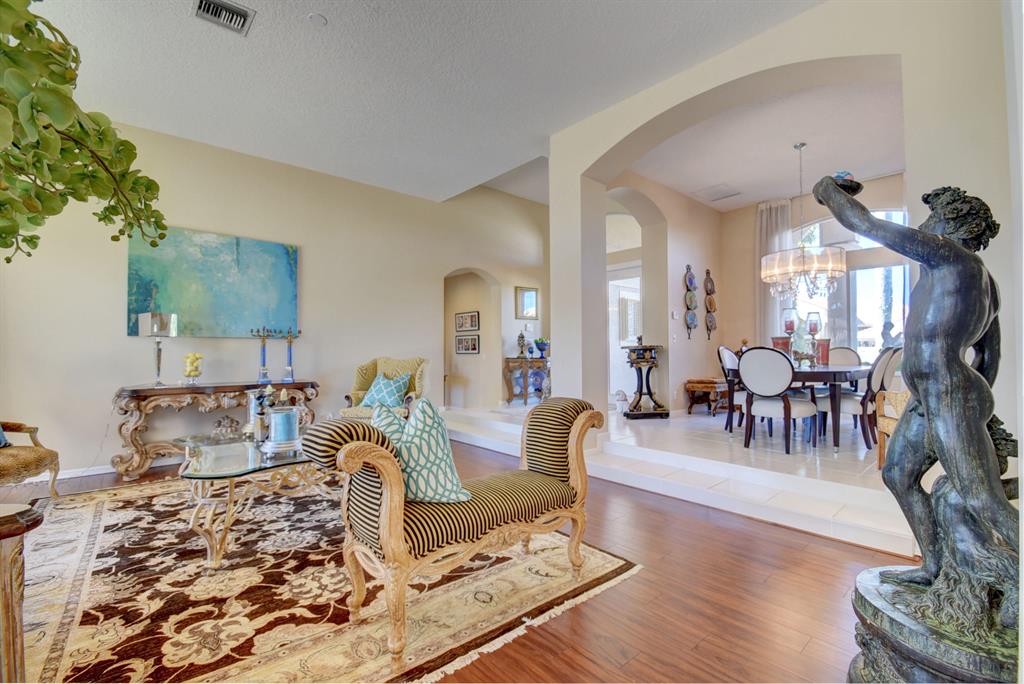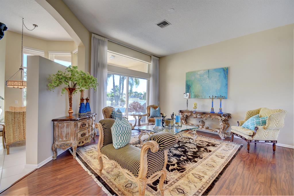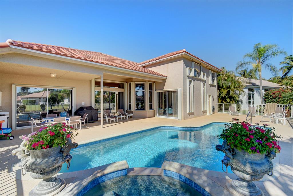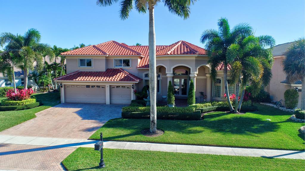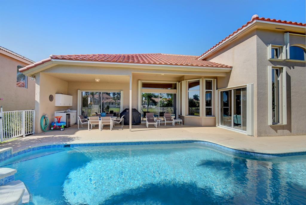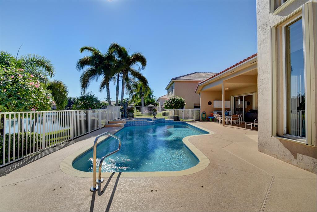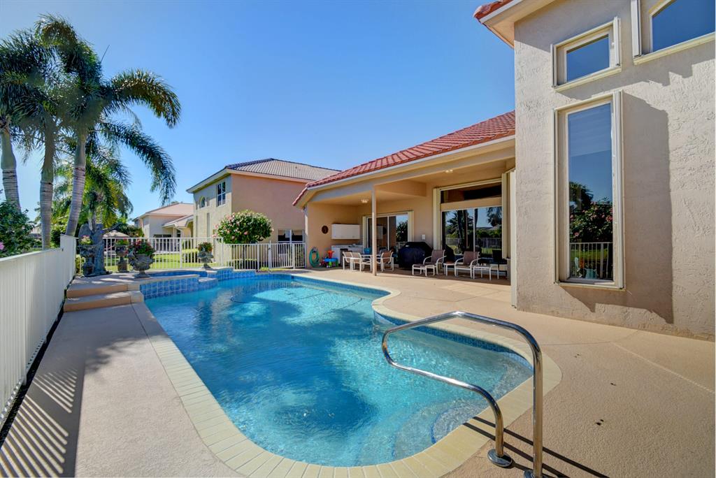 This is the EXPANDED Palm Beacher model residence that you have been waiting for. This beautiful 5 bedroom plus 4 full bath home with a 3 car garage is located on one of the best premium lakefront lots in the community. Features include an oversized custom pool and spa with new pool pump, tile, child pool fence, and diamond brite, updated kitchen with new granite, stainless steel appliances, and white cabinets, tile and wood floors throughout the living areas, gorgeous landscaping, hurricane shutters, plus a brand new roof.