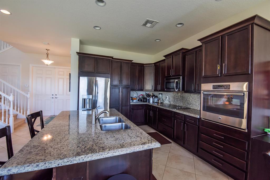 Look no further, the most affordable home in PortoSol has just hit the market! Built in 2015, this home feels brand new and shows like a model! With serene water views from almost every single room, this popular 'Sydney' floor plan was built with all the bells and whistles and offers the 4th bedroom and 3rd full bathroom downstairs for convenience. Fit for a chef, the custom, gourmet kitchen will impress with 42'' wood cabinets, built-in oven, beautiful granite, & stainless steel appliances. IMPACT WINDOWS throughout, formal dining room, upgraded baths, huge walk-in master closet, upstairs laundry, and upgraded landscape package add to the appeal and charm of this immaculate home. Take in the beauty of the sunsets over the lake from your extended paver patio while watching the kids