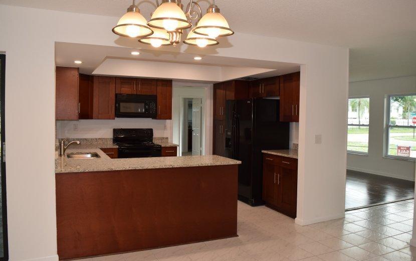 Beautiful just renovated inside and out 3/2/2 home with laundry room located in Foxwood Estates. Brand new central A/C unit. All brand new energy efficient windows with Miami Dade approved storm shutters. Fresh paint inside and out. Tile and Laminate flooring in living areas with new carpet in bedrooms. Fully renovated kitchen with custom wood cabinets with easy close doors and drawers with beautiful granite countertops. All updated appliances with large side by side frig., garbage disposal and brand new hot water heater. Custom tray ceiling with new LED lighting making the kitchen bright and beautiful. All new exterior walk in doors, all interior doors brand new including closets. Three full sized sliding glass doors open to the rear large screened enclosed patio in combination