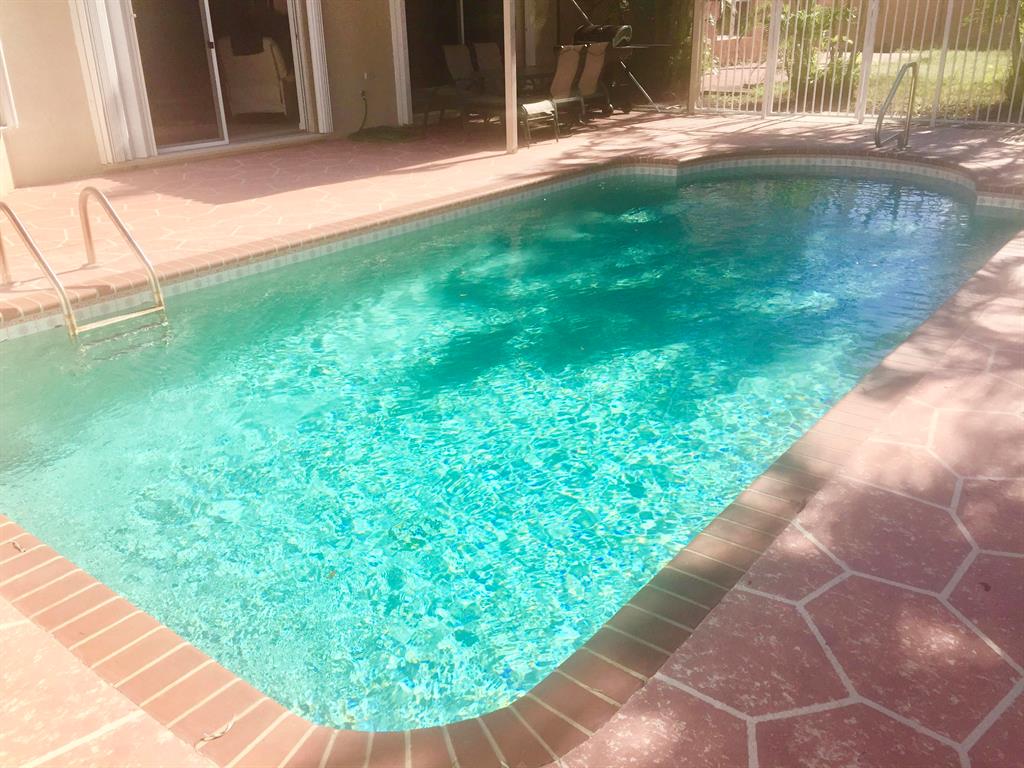 Charming 3/2 with newer stainless Apliances. Bright, open spacious floor-plan. Master bedroom with walk in closet. Master bath with dual sinks, separate shower and large roman tub! Private pool, patio with no neighbors behind! Walking distance to great schools, parks and houses of worship. Accordion shutters in all windows. Fans and blinds in every room. Well maintained home! Great backyard for entertaining! Seller will leave BBQ and Patio furniture! Fantastic community amenities that include Cable, HBO and internet, Fitness center, heated pools, kiddie pools, playgrounds, tennis, bballs and picnic and barbecue pavilion. New soccer field. This subdivision has its own tot lot with a beautiful park for walking, biking and jogging. Dog friendly. Furniture negotiable. Ready to move in