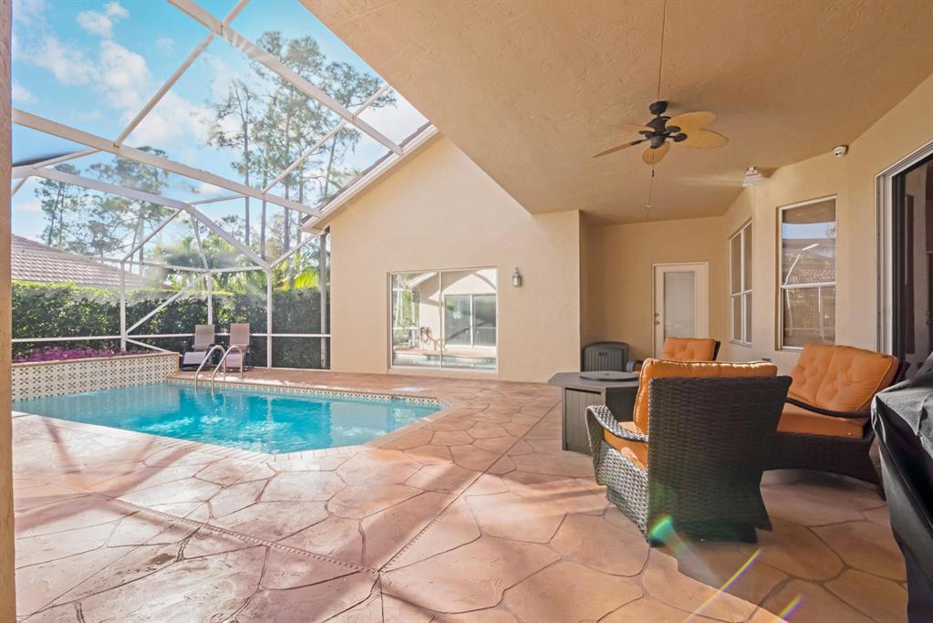 Gorgeous courtyard, pool home with guest house! Come inside and enjoy spacious living areas with tile throughout along with an inviting kitchen which boasts stainless steel appliances. All of the bedrooms are spacious as well. Outside you can enjoy a great courtyard with serene pool and a beautiful and very private backyard with no neighbors behind you! Property comes with a home warranty that expires end of year 2019. All of this located in the Estates of Royal Palm Beach a meticulously maintained subdivision in the heart of Royal Palm Beach and close to everything!